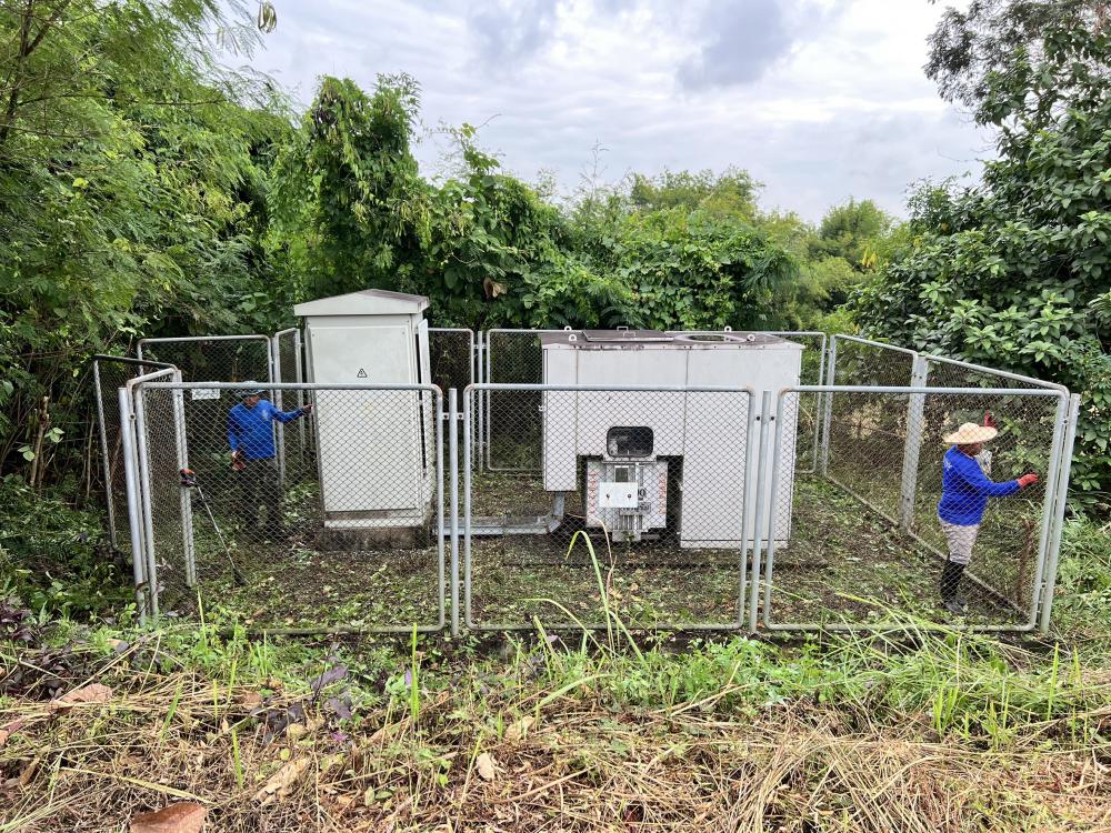 ทำการถางหญ้าหม้อแปลงสระว่ายน้ำ
