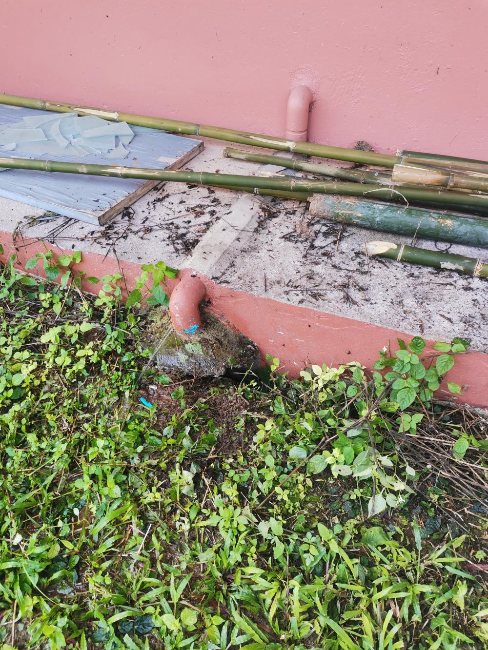 ตรวจสอบและซ่อมแซมท่อน้ำบริเวณด้านหลังอาคารเรียนรวม 1 (8 ชั้น)