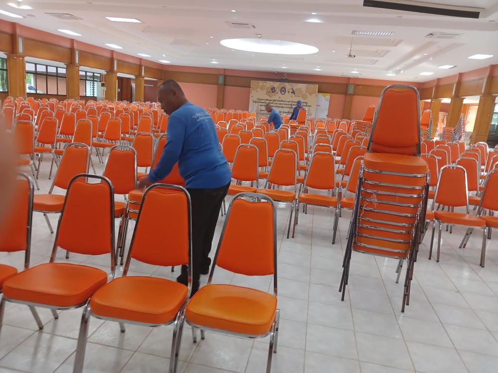 จัดเก็บเก้าอี้หอประชุมกาสะลองคำ