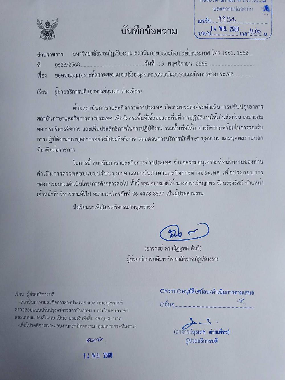ตรวจสอบแบบปรับปรุงอาคารสถาบันภาษาและกิจการต่างประเทศ