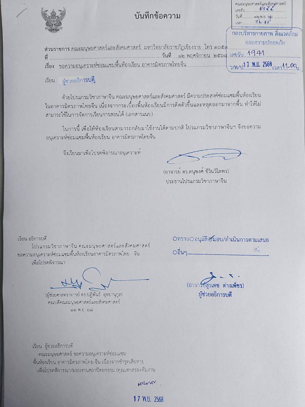 คณะมนุษยศาสตร์ฯ ซ่อมแซมพื้นห้องเรียนอาคารมิตรภาพไทย - จีน เนื่องจากชำรุดเสียหาย