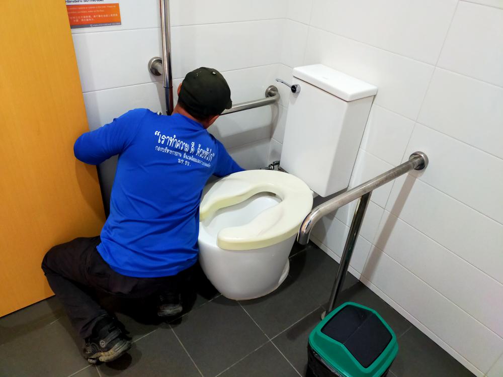กองบริหารกายภาพฯ เปลียนสายฉีดชำระ ห้องน้ำคนพิการชั้น 3 ฝั่งห้องท่านอธิการบดี