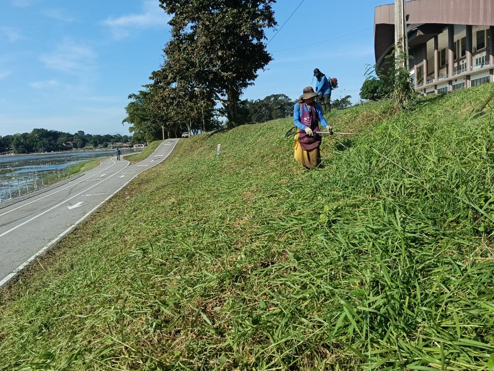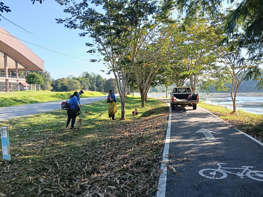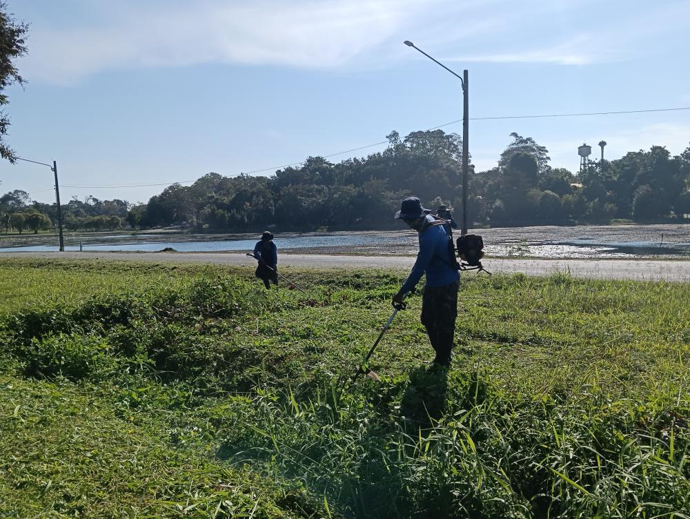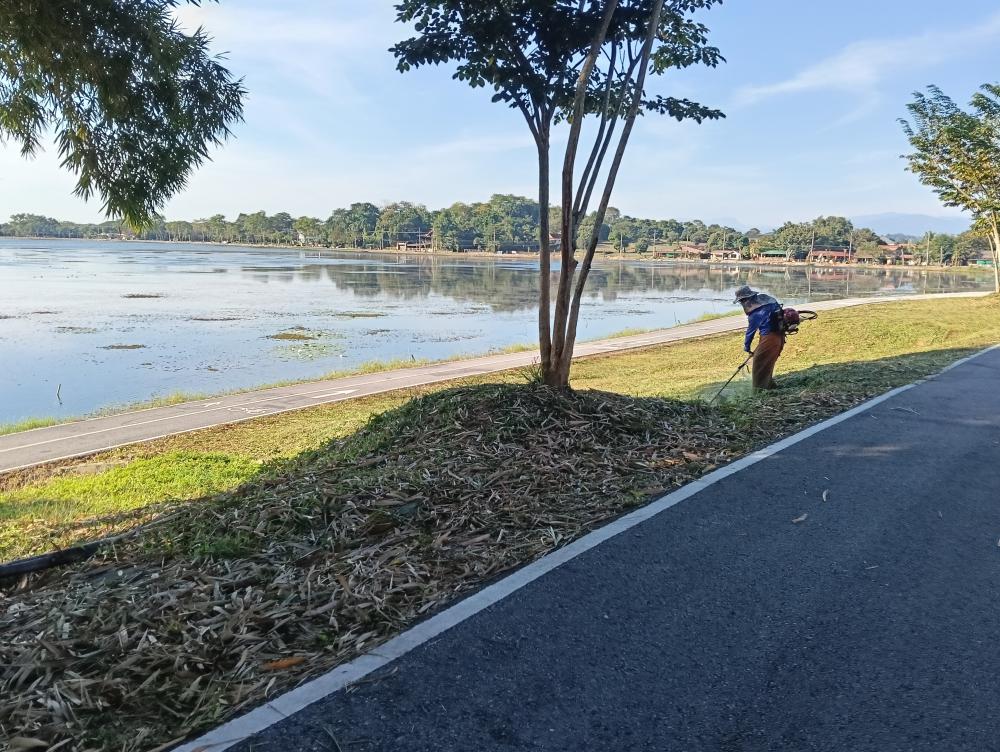 ตัดหญ้าโชนรอบข้างทางที่วิ่งออกกำลังกาย