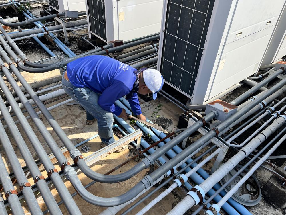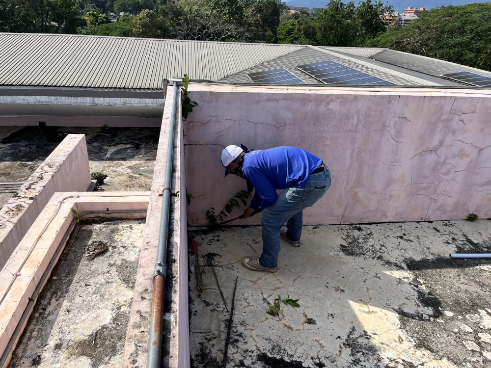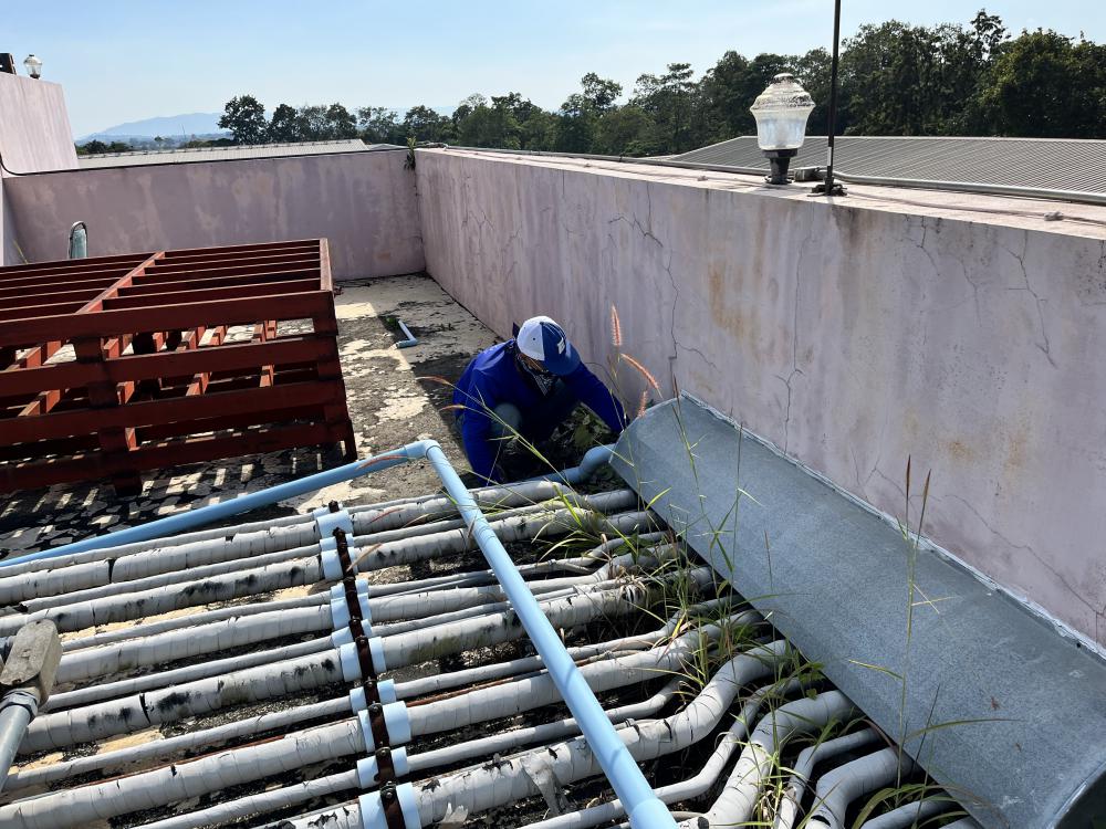 กองบริหารกายภาพฯ กำจัดวัชพืชทำความสะอาดป้ายมหาลัย สำนักงานอธิการ