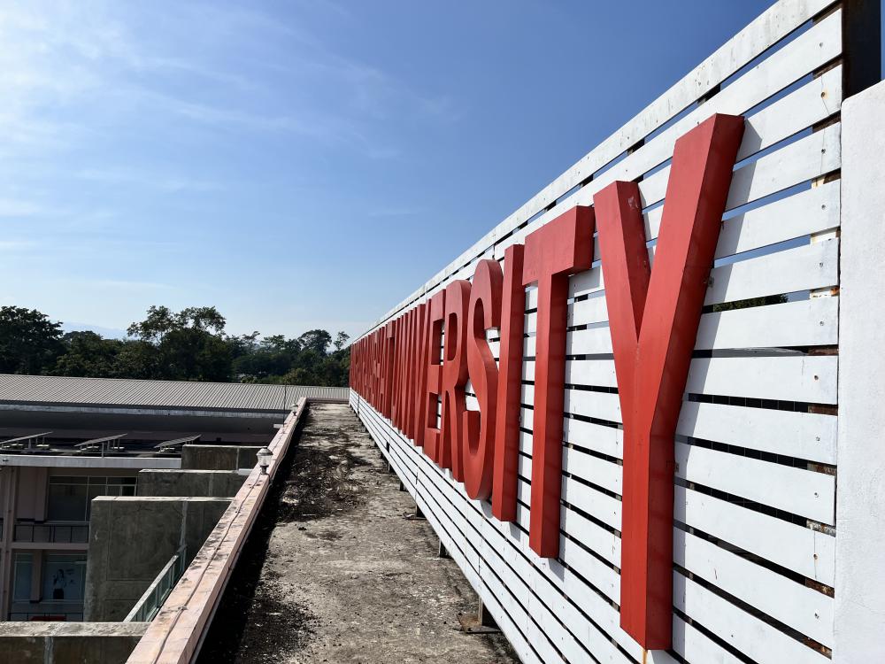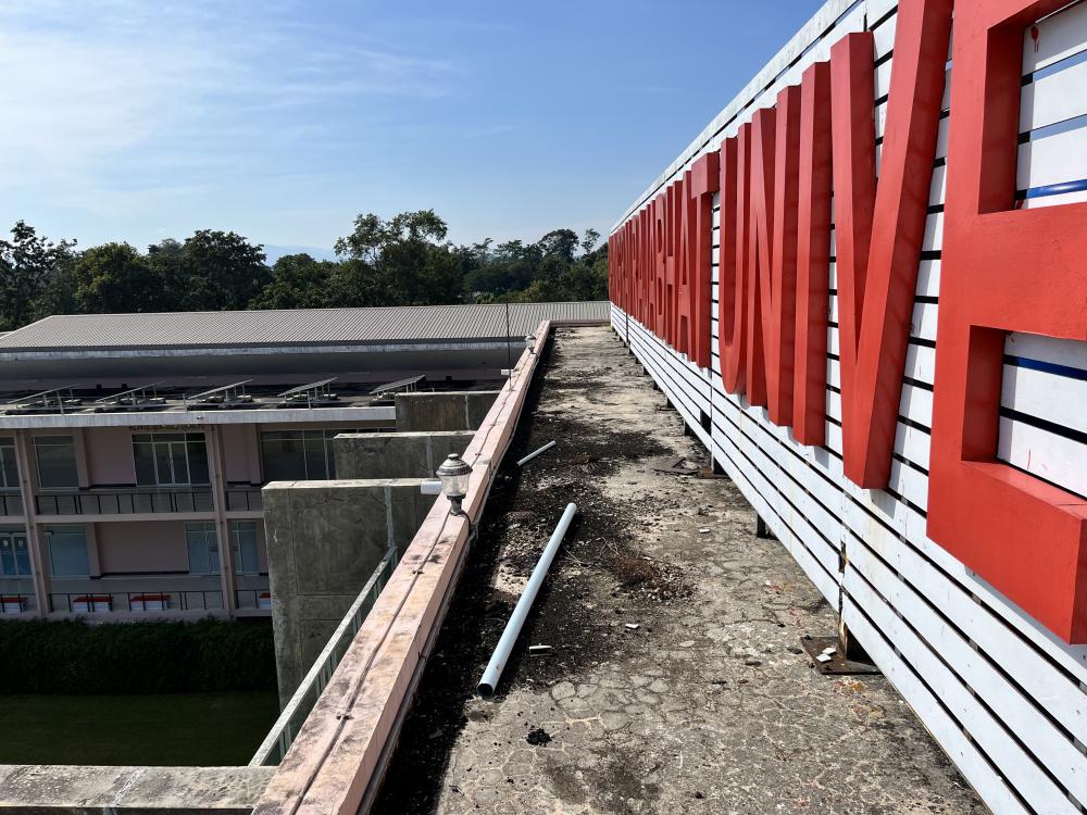 กำจัดวัชพืชทำความสะอาดป้ายมหาลัย สำนักงานอธิการ