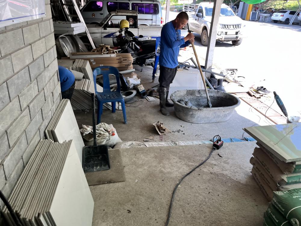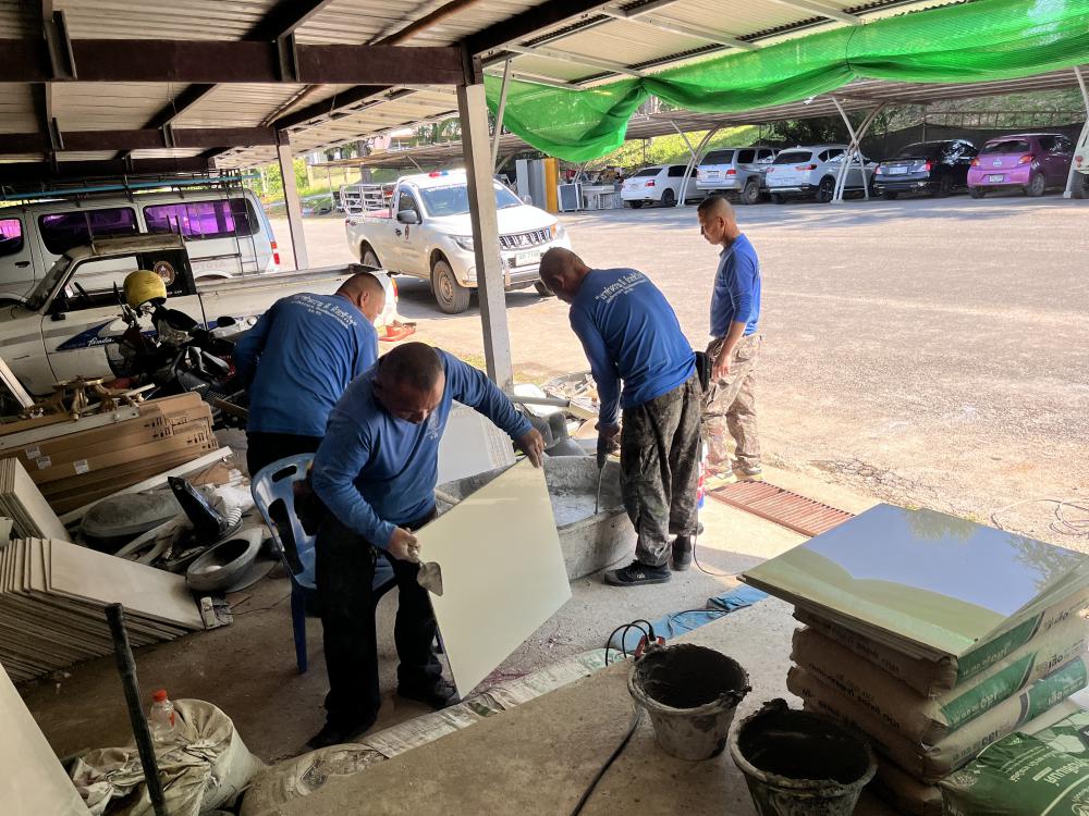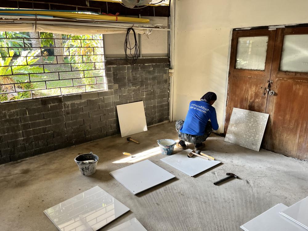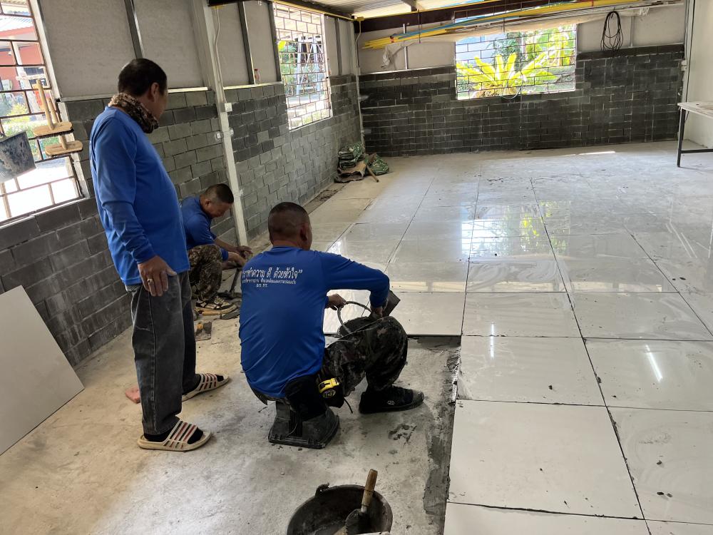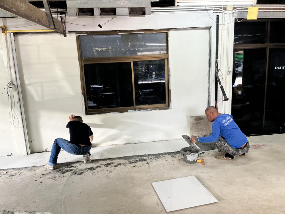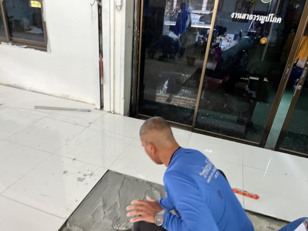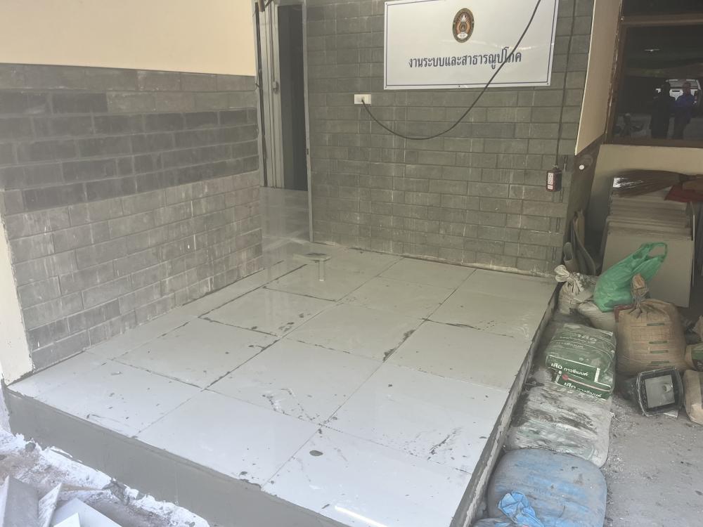 ปูกระเบื้องห้องสำนักงานสาธารณูปโภค