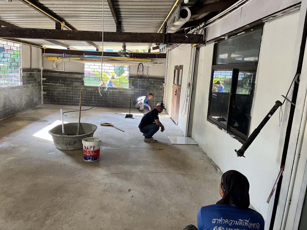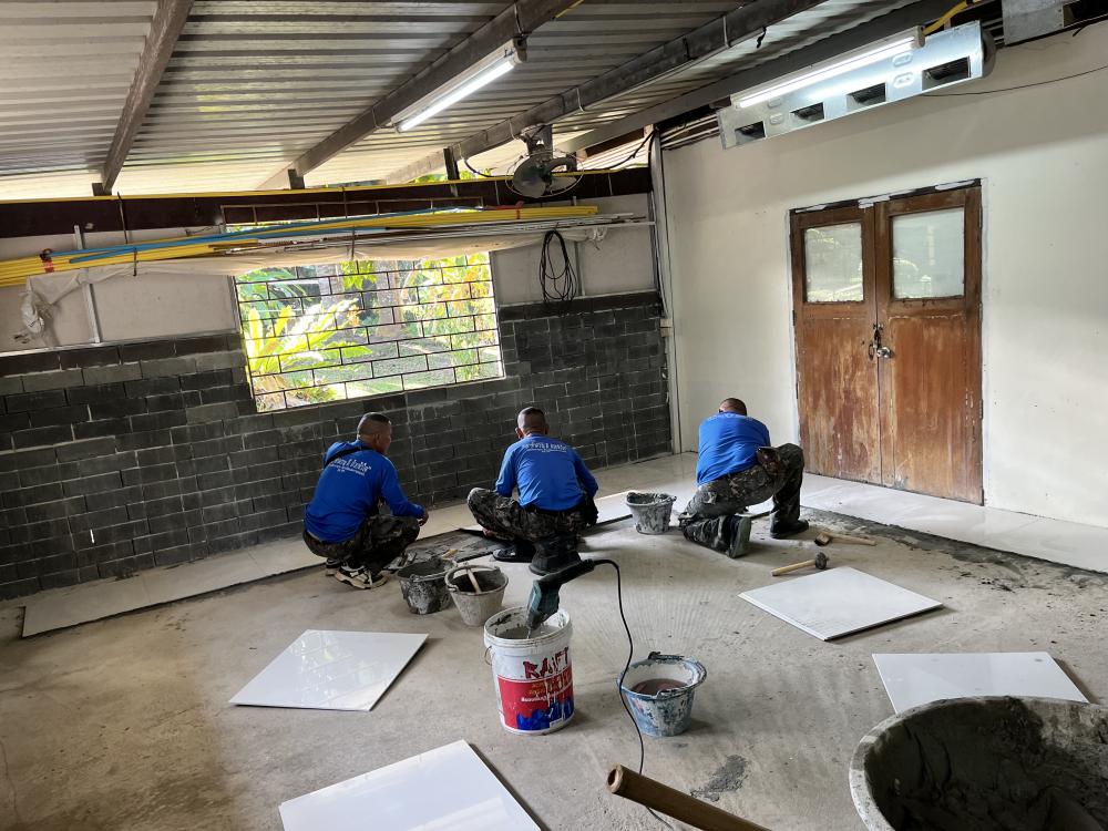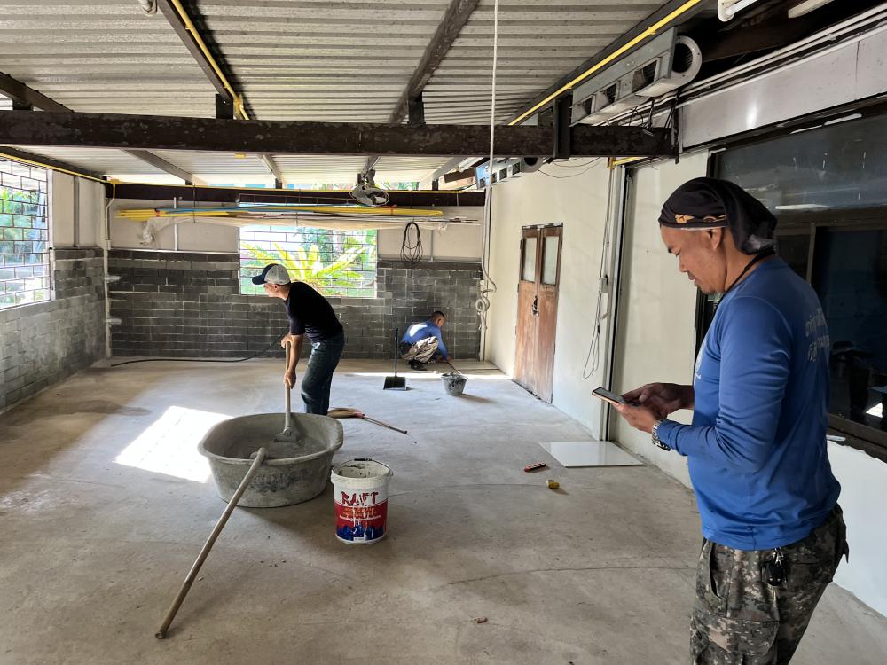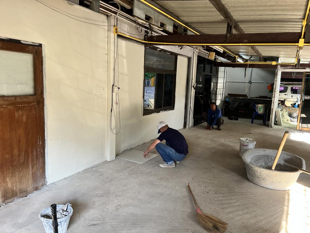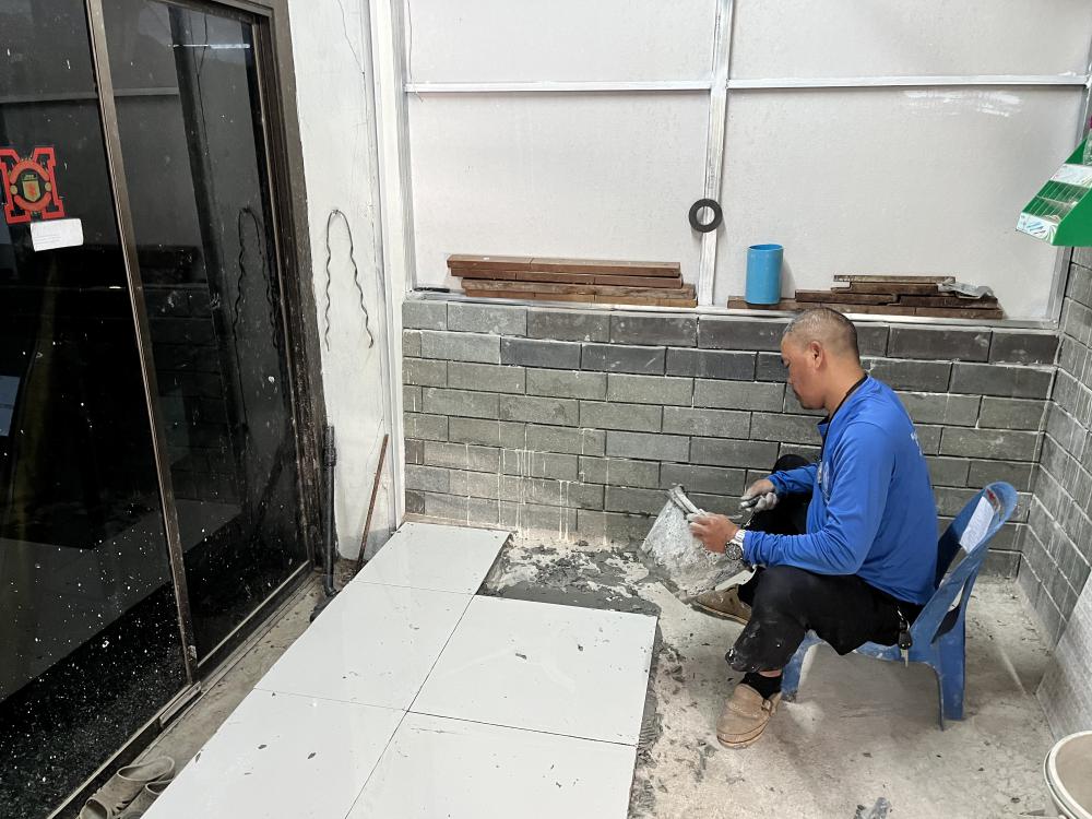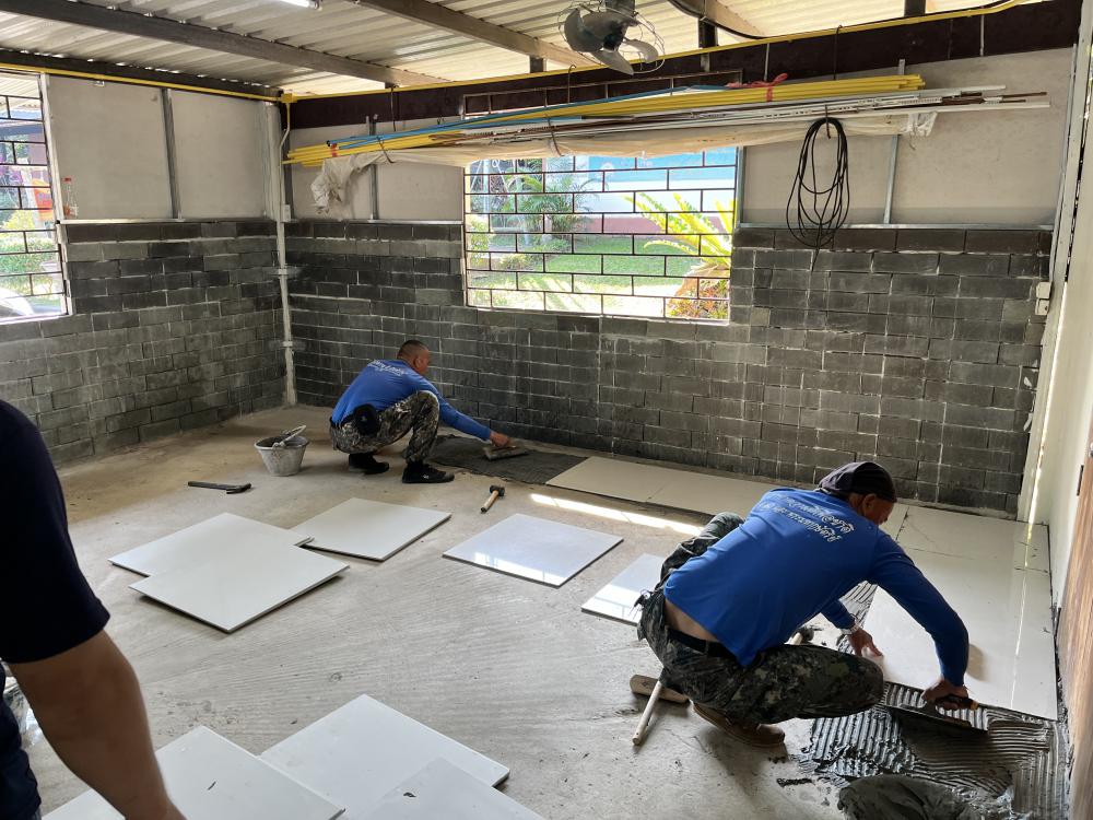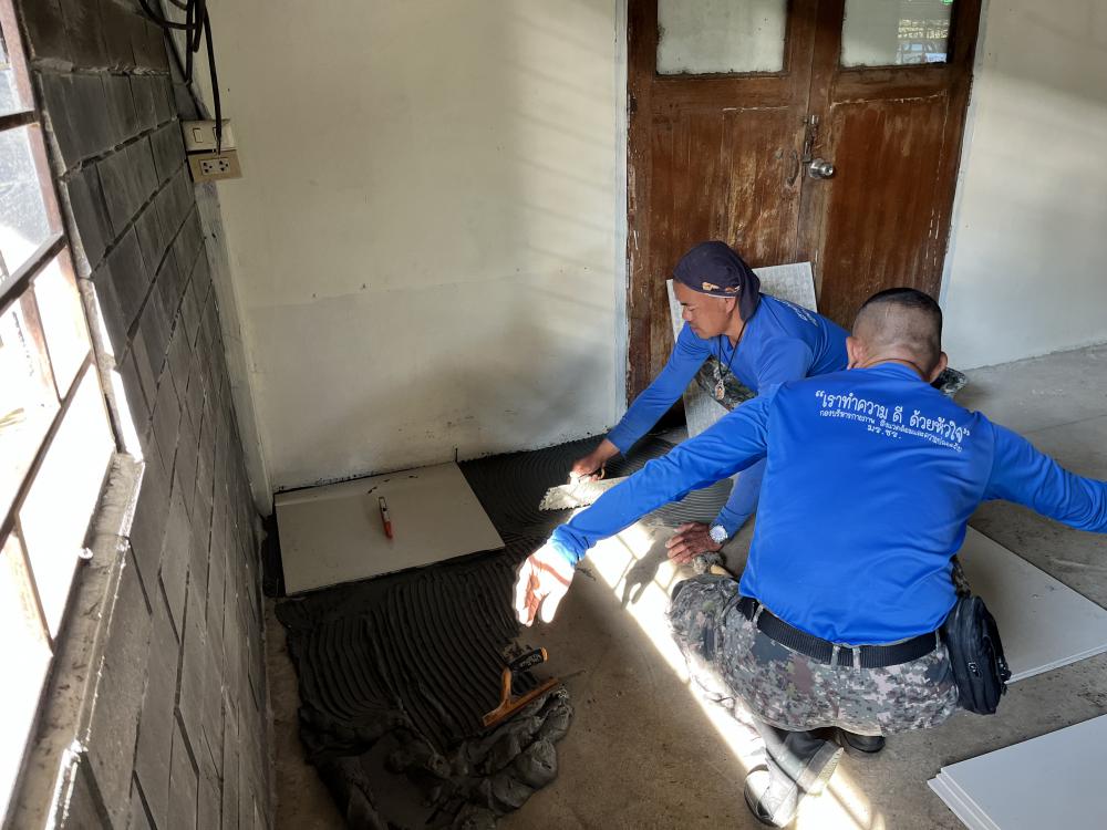 ปูกระเบื้องห้องสำนักงานสาธารณูปโภค
