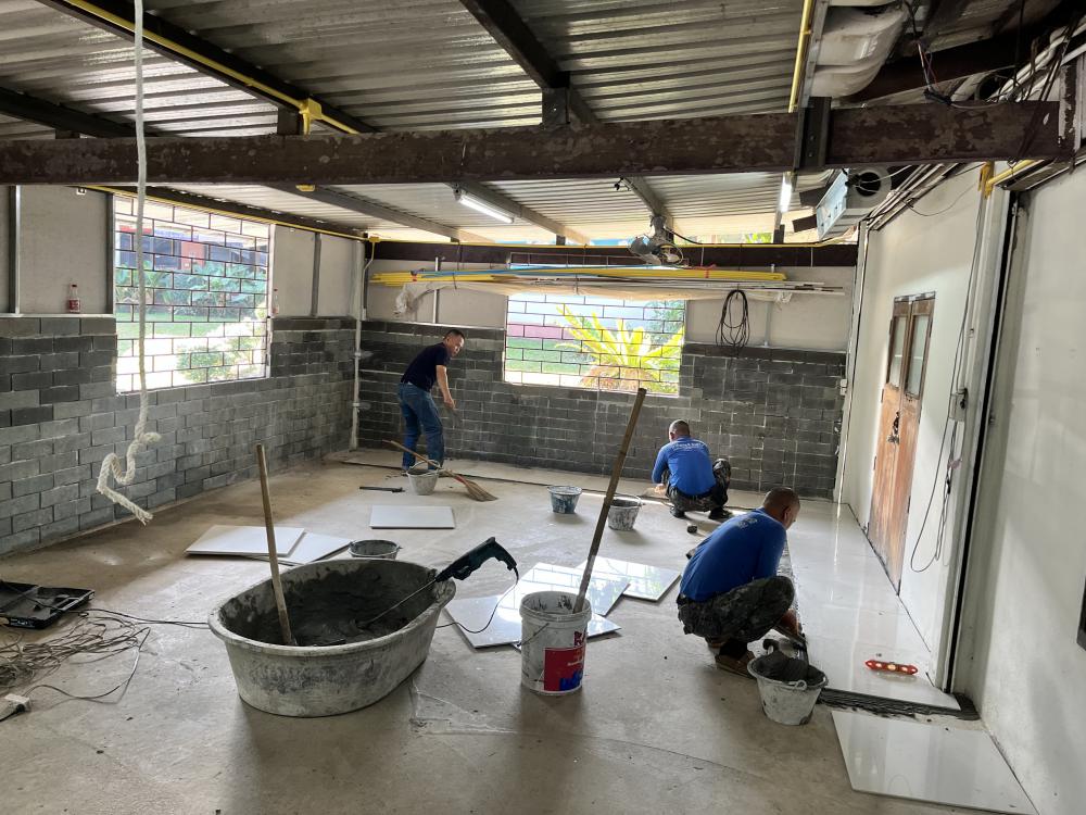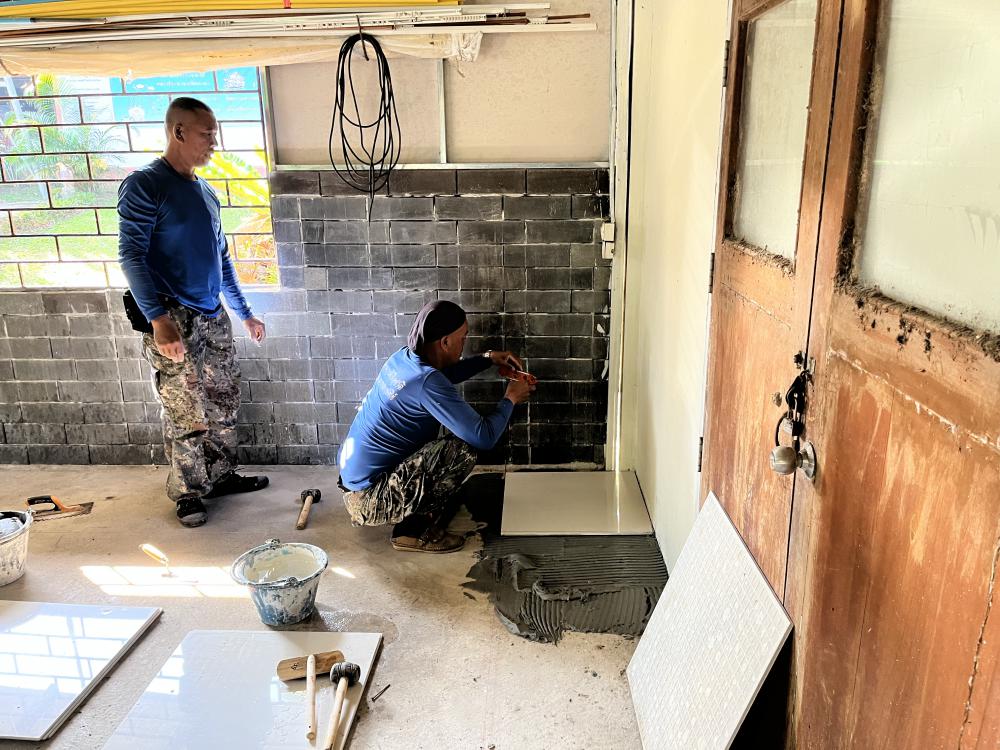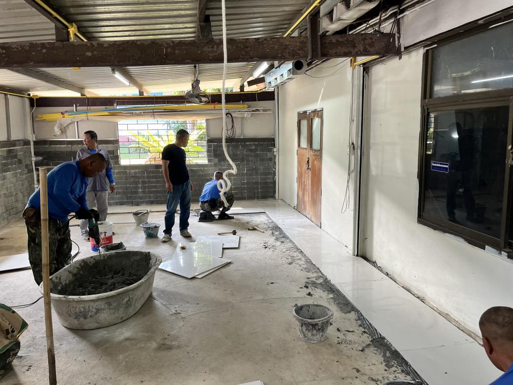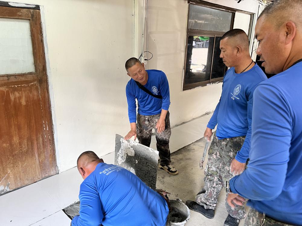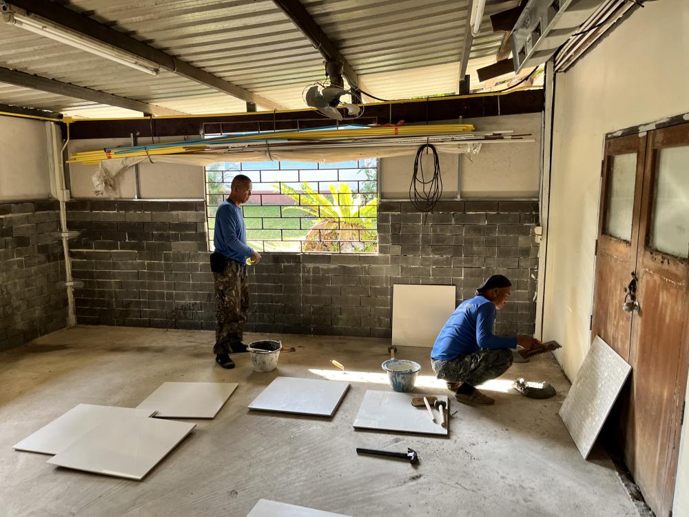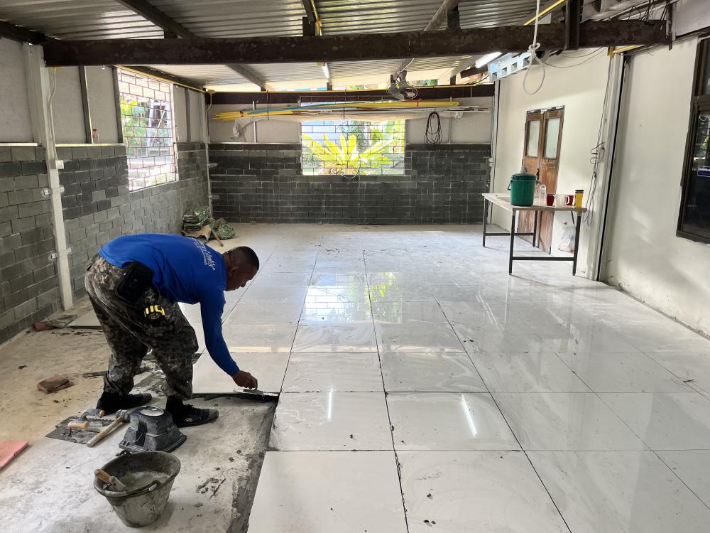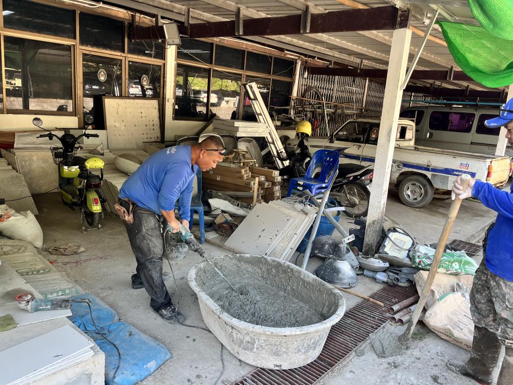 ปูกระเบื้องห้องสำนักงานสาธารณูปโภค