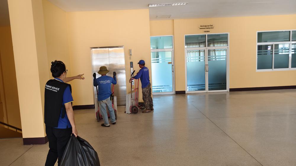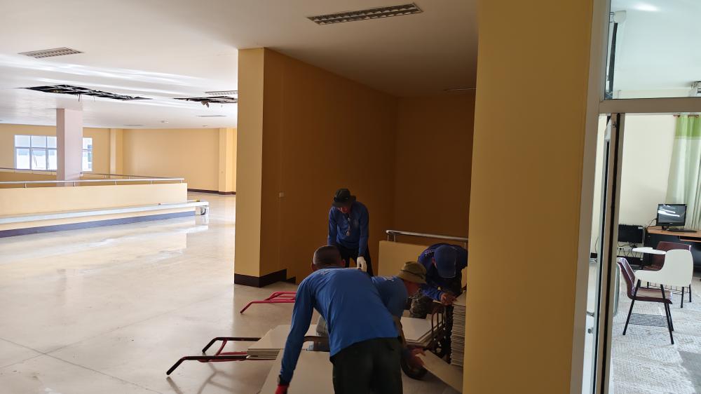 คณะพยาบาลศาสตร์ ขนย้ายกระเบื้องปูพื้น มาเก็บที่กองบริหารกายภาพ