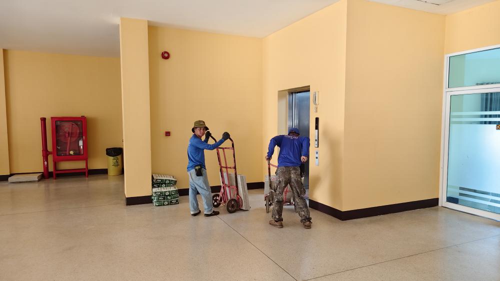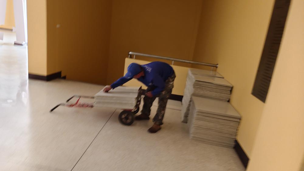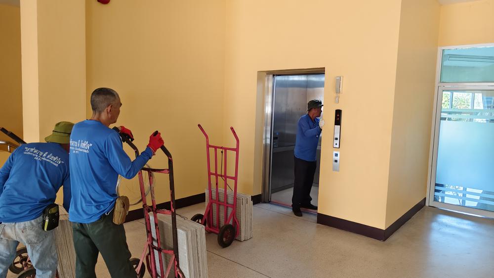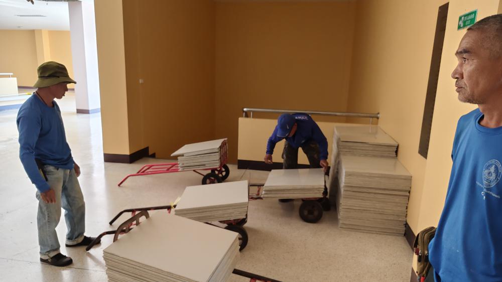 ขนย้าย กระเบื้องปูพื้น มาเก็บที่กองบริหารกายภาพ