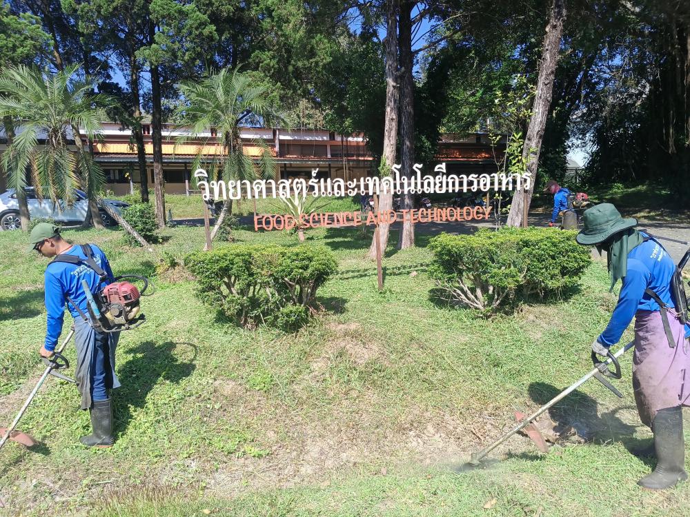 กองบริหารกายภาพฯ ตัดหญ้าคหกรรมอาหารอาคารเกษตรและโรงพยาบาลสัตว์