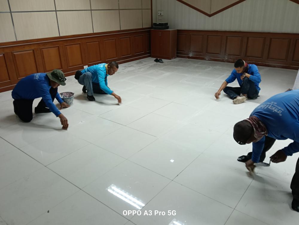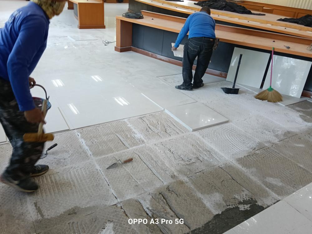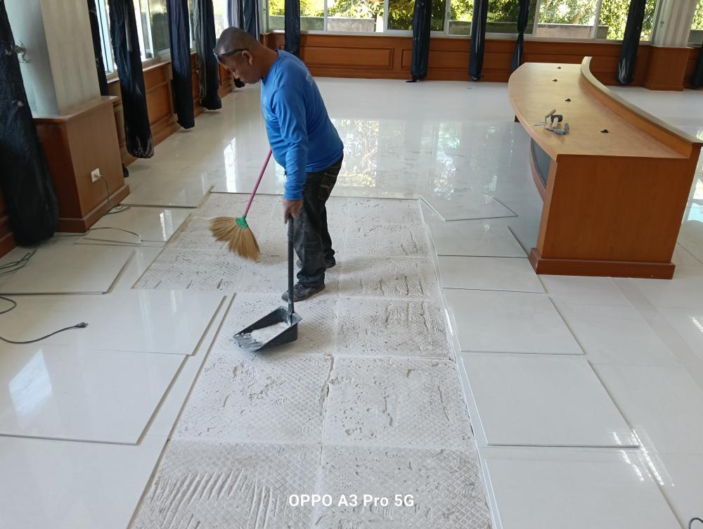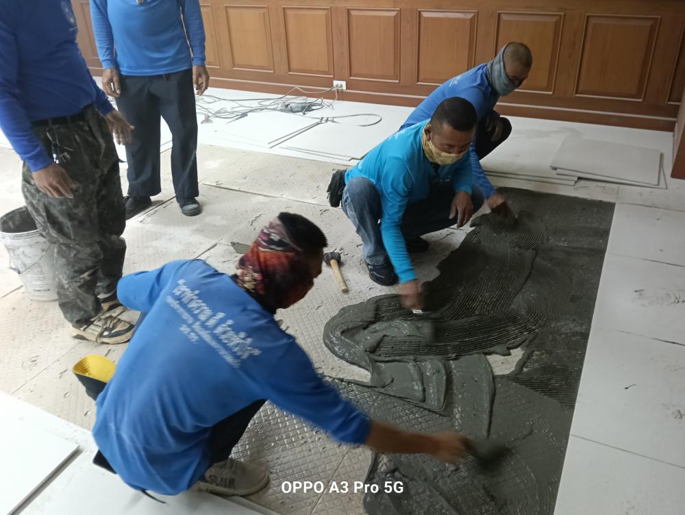 ซ่อมแซมกระเบื้องปูพื้นทางเข้าห้องอธิการบดี