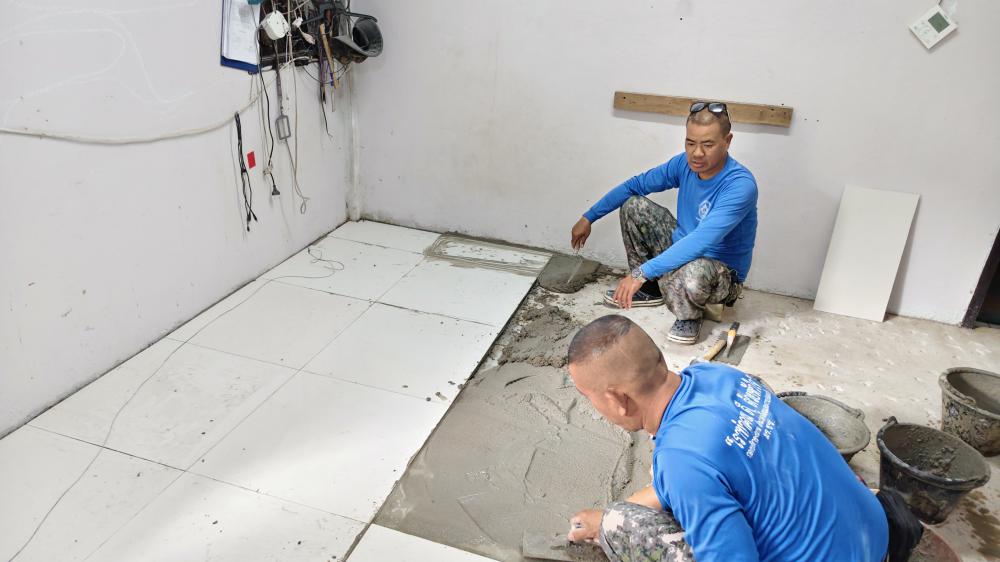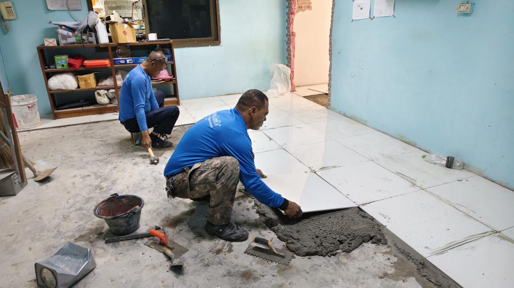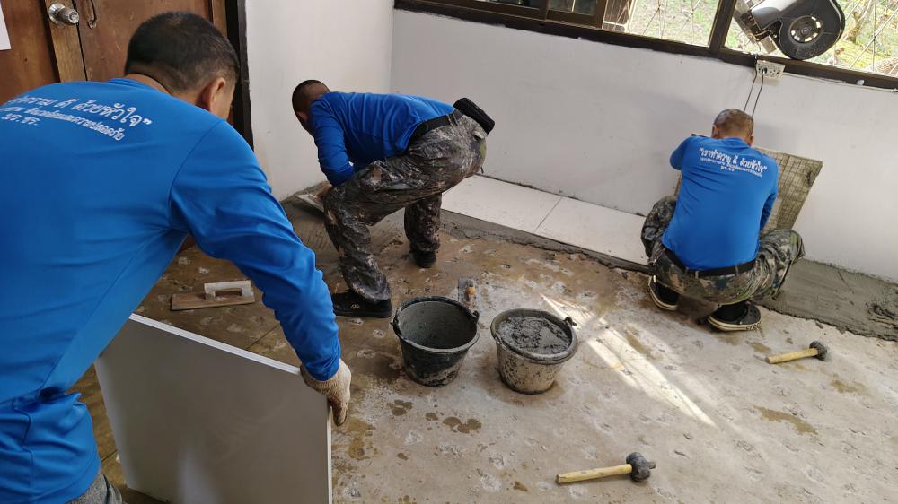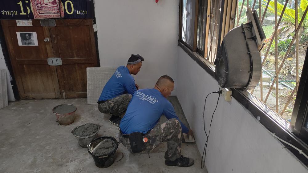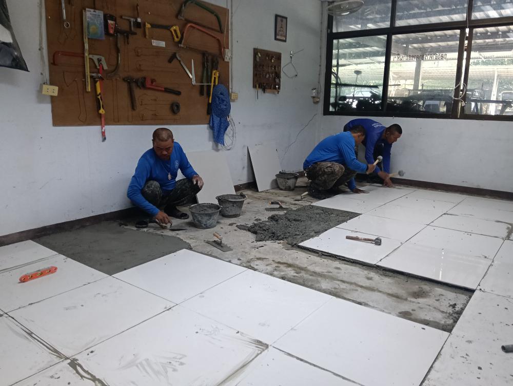ปูกระเบื้องห้องสาธารณูปโภค