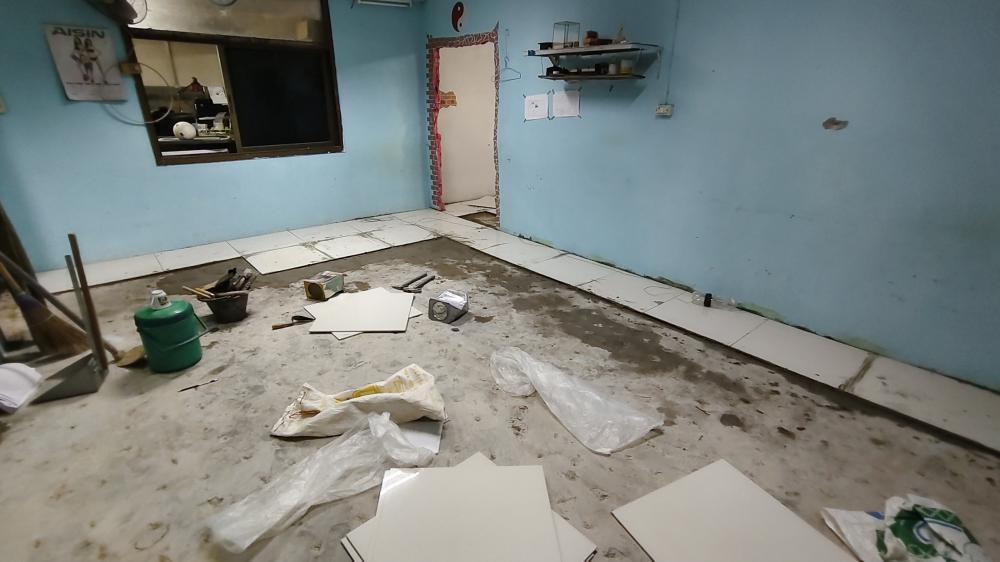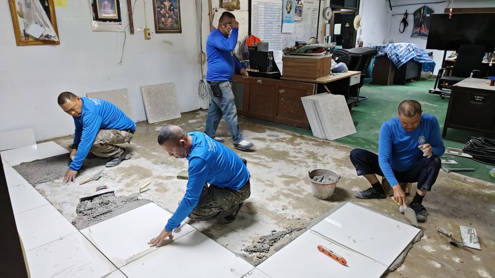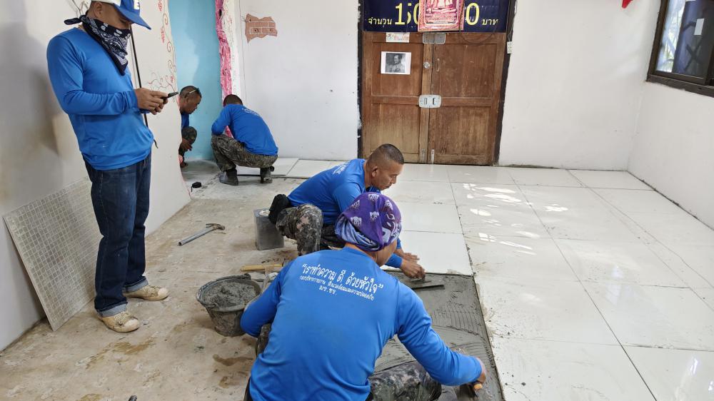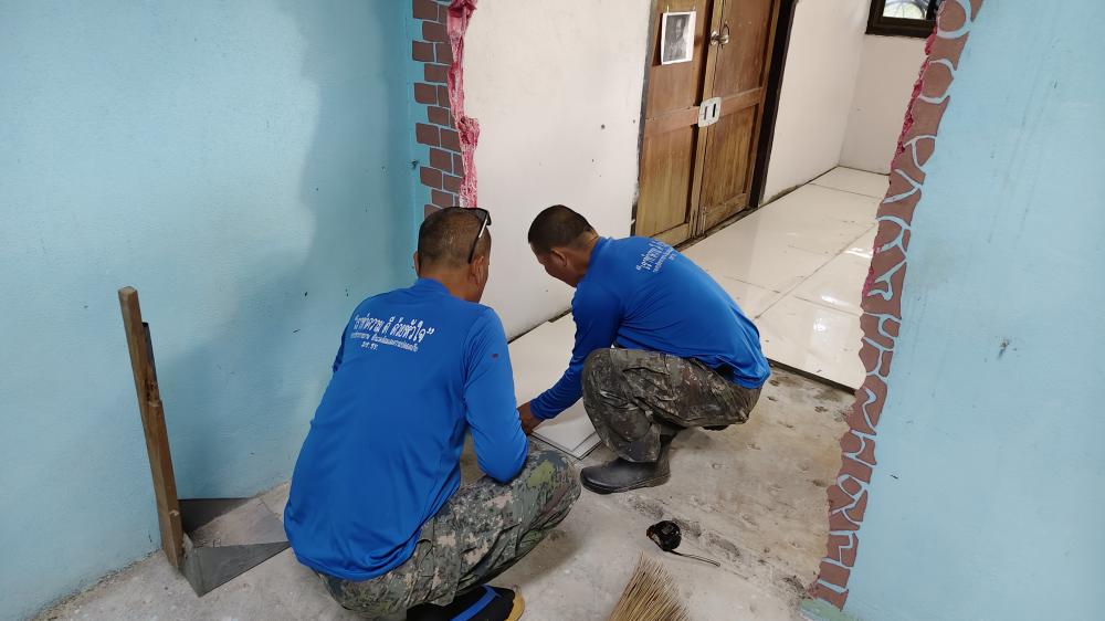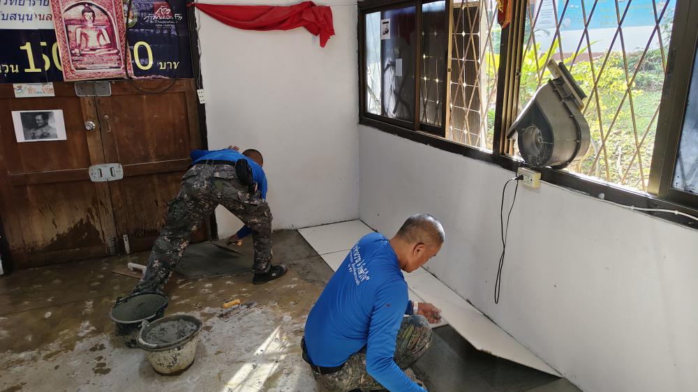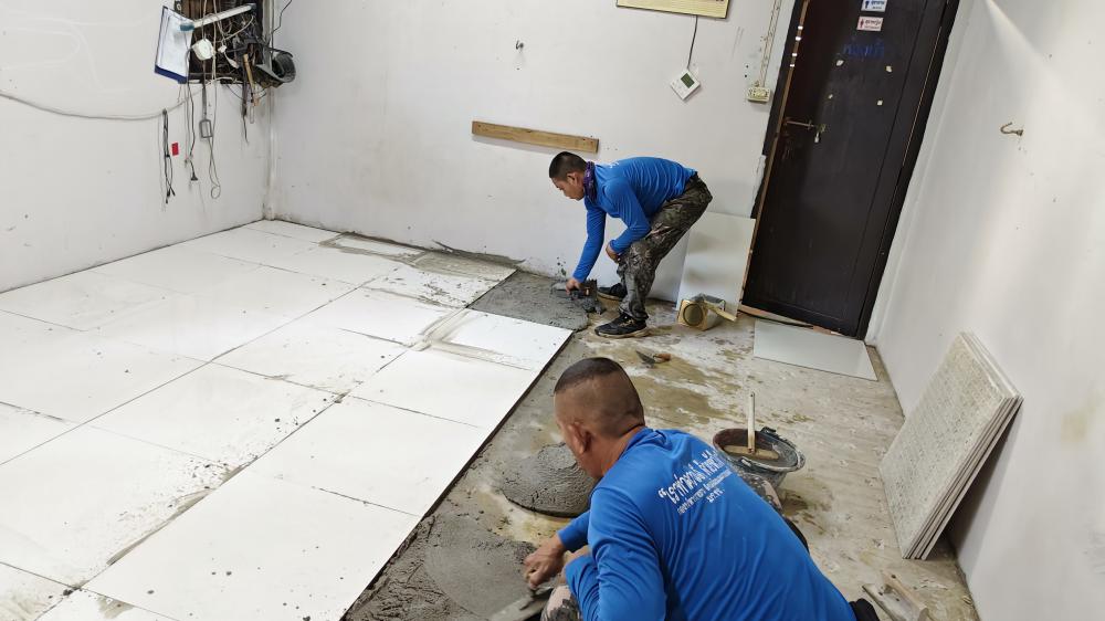 ปูกระเบื้องห้องสาธารณูปโภค