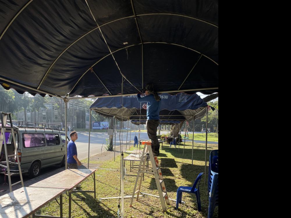 กองบริหารกายภาพฯ คณะมนุษย์ศาสตร์และสังคมศาสตร์จัดงานคริสต์มาส ติดตั้งหลอดไฟเต้นจำนวน 7 หลังและแสงสว่างรอบงานบริเวณเวทีกลางแจ้ง