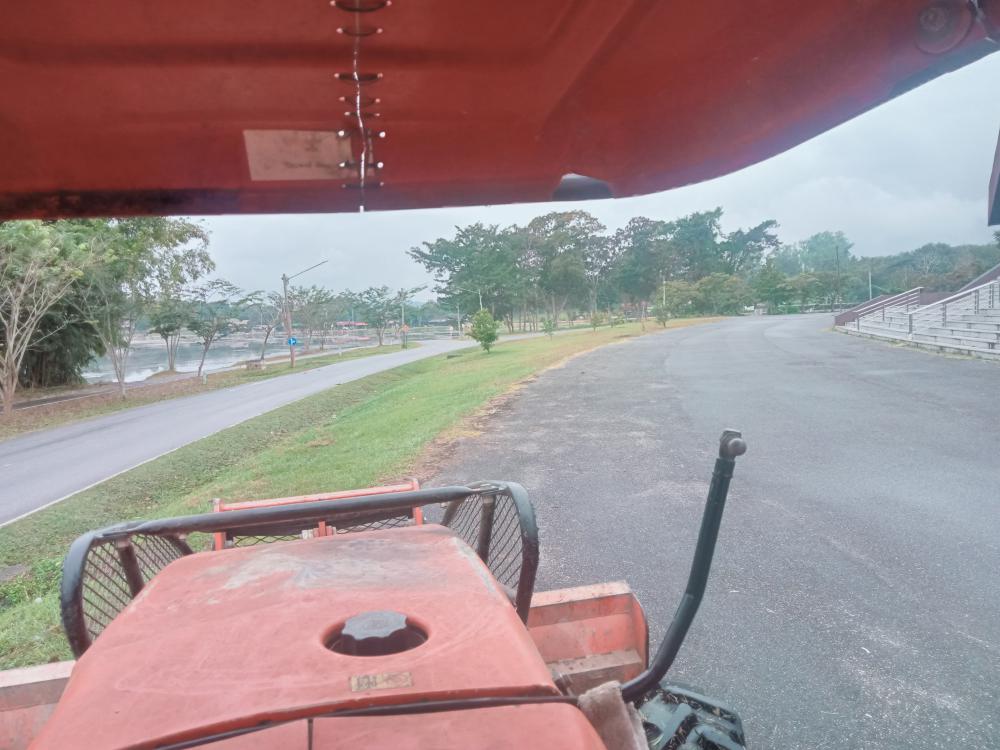 ขับแทรกเตอร์ตัดหญ้ารอบบริเวณหอประชุมนานาชาติ