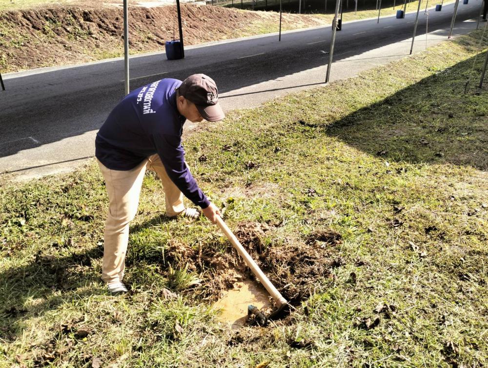 ซ้อมท่อน้ำแตกข้างหอประชุมใหญ่
