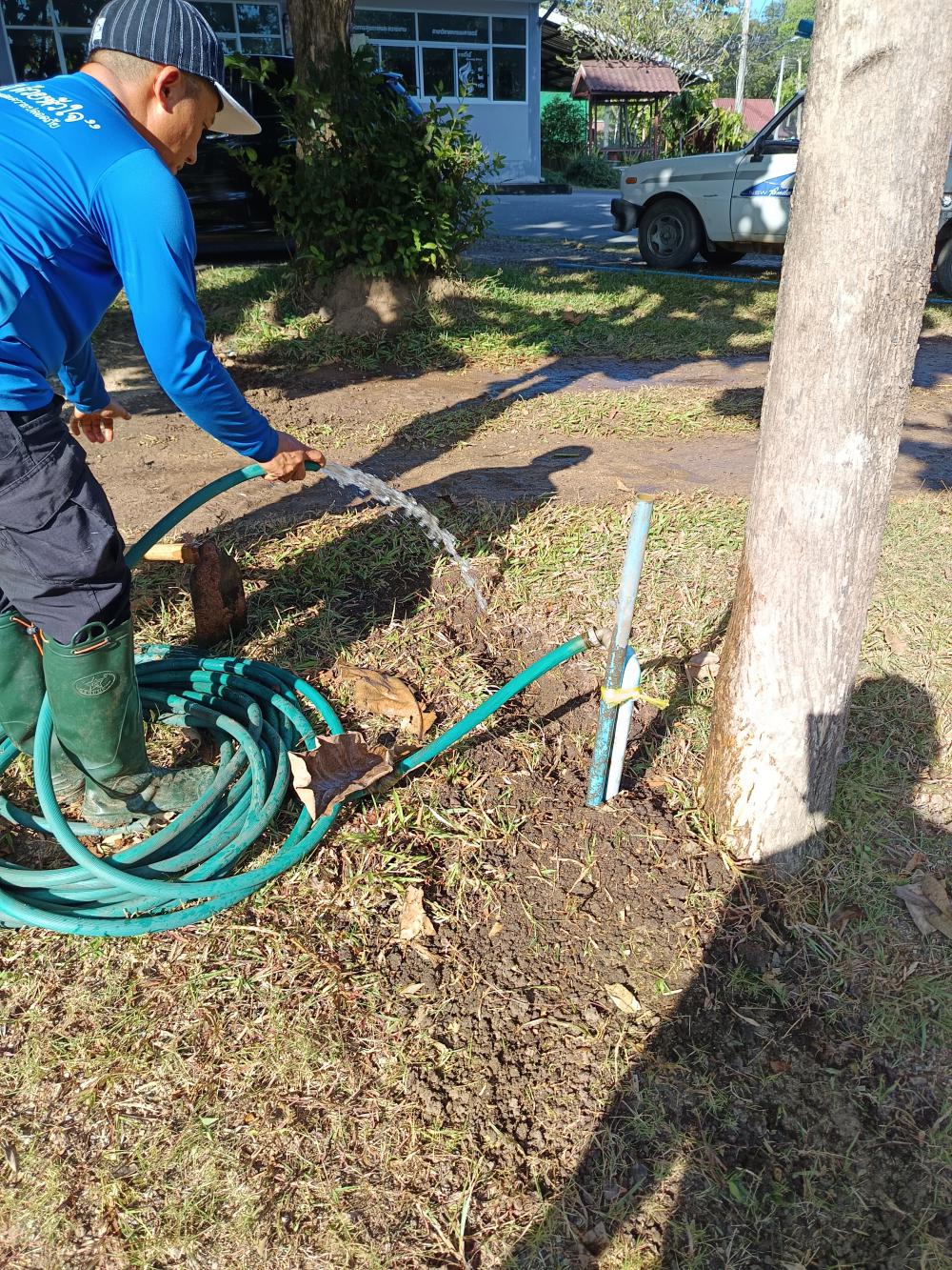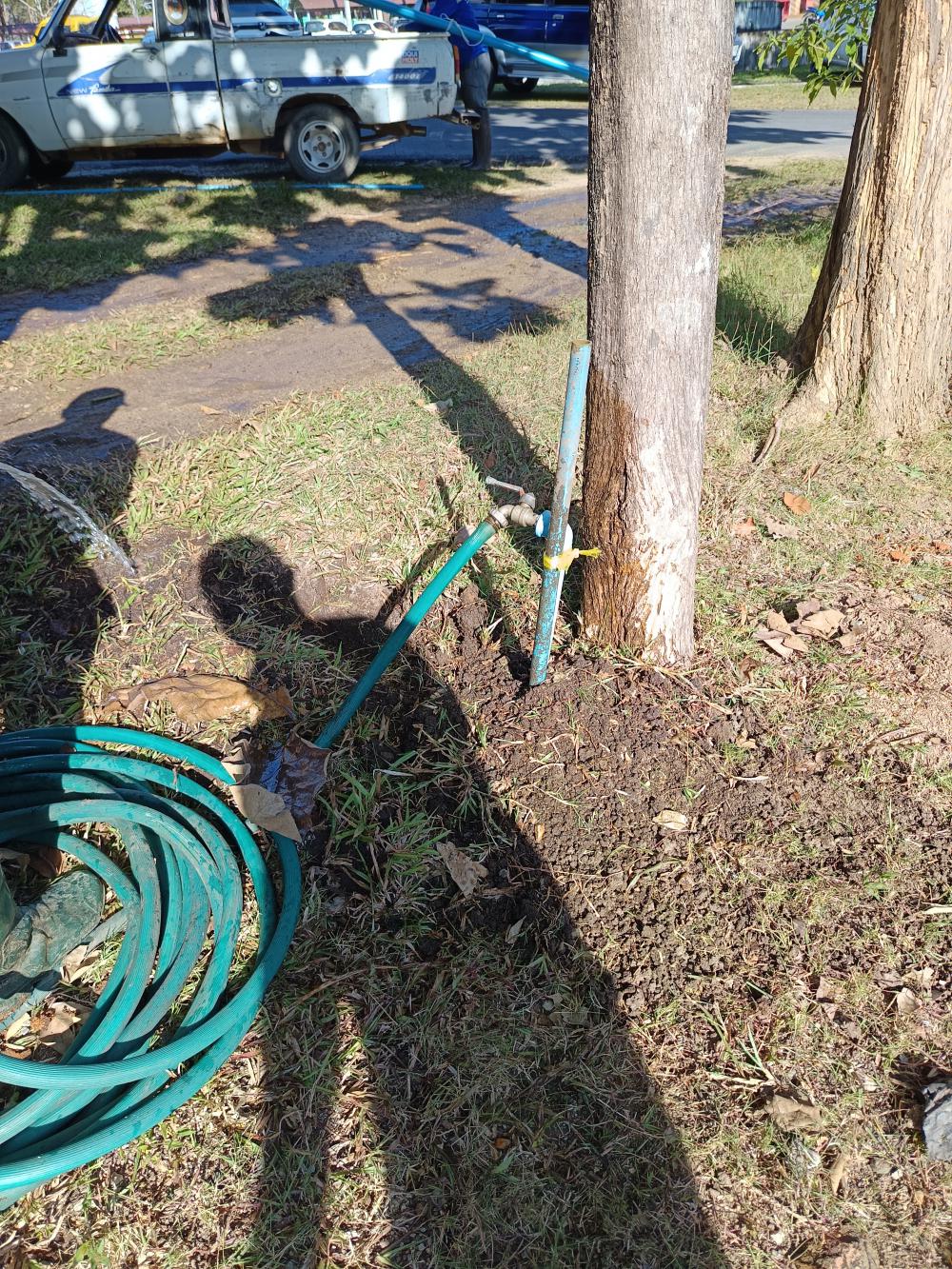 รถทับท่อประปาแตกลานจอดรถคหกรรม