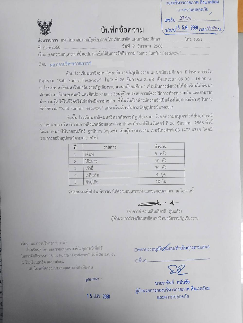 ขนย้ายอุปกรณ์ กิจกรรม Satit Funfair Festiwow ณ โรงเรียนสาธิตฯ แผนกมัธยมศึกษา