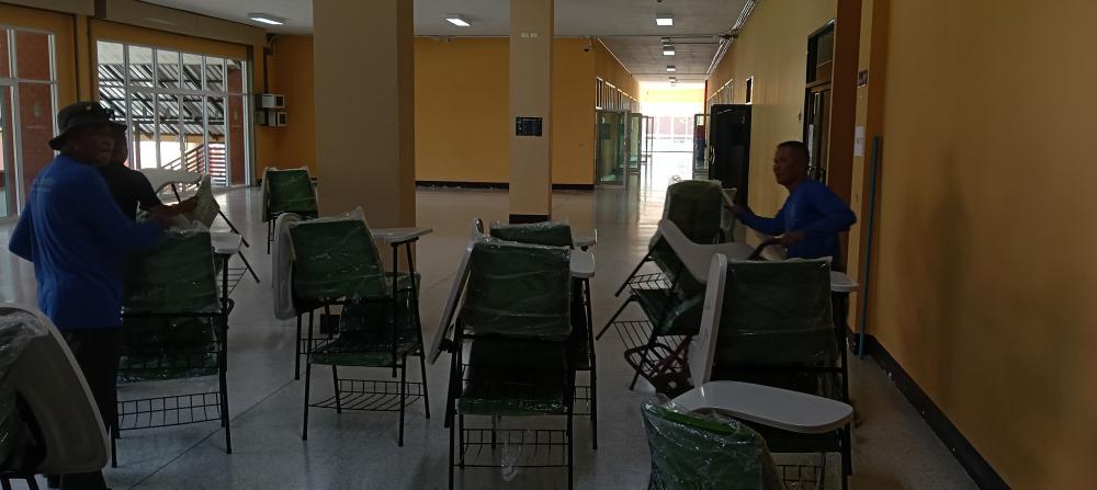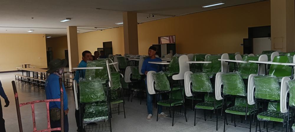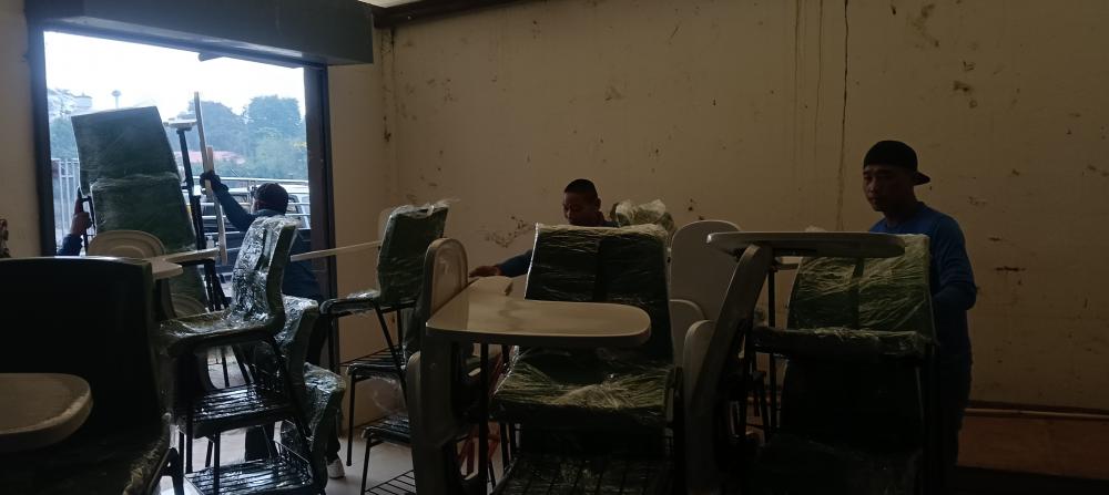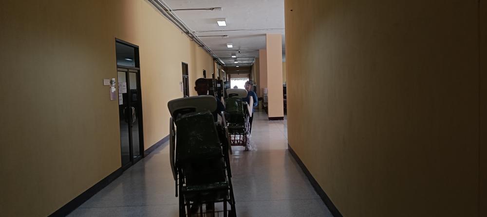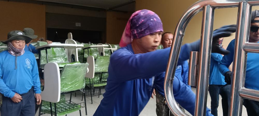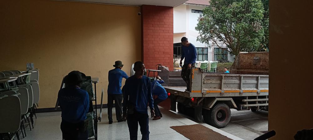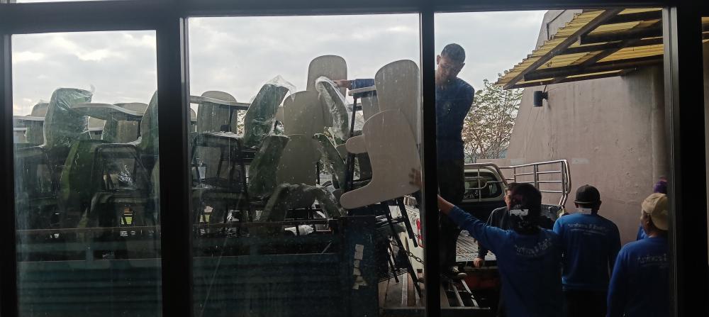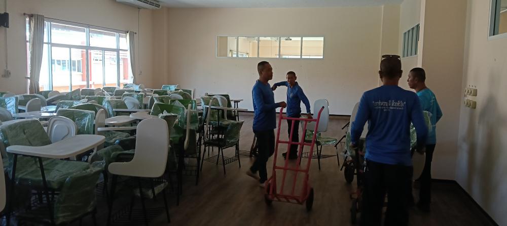 ขนย้ายเก้าอี้แล็คเชอร์จากหอประชุมใหญ่ไปตึก102