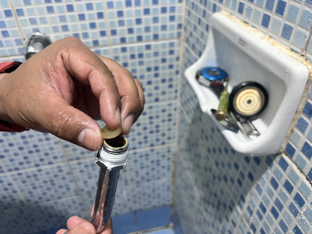 กองบริหารกายภาพฯ เปลี่ยนหลอดๆฟห้องน้ำและแก้ไขฝักบัวในห้องอาบน้ำ