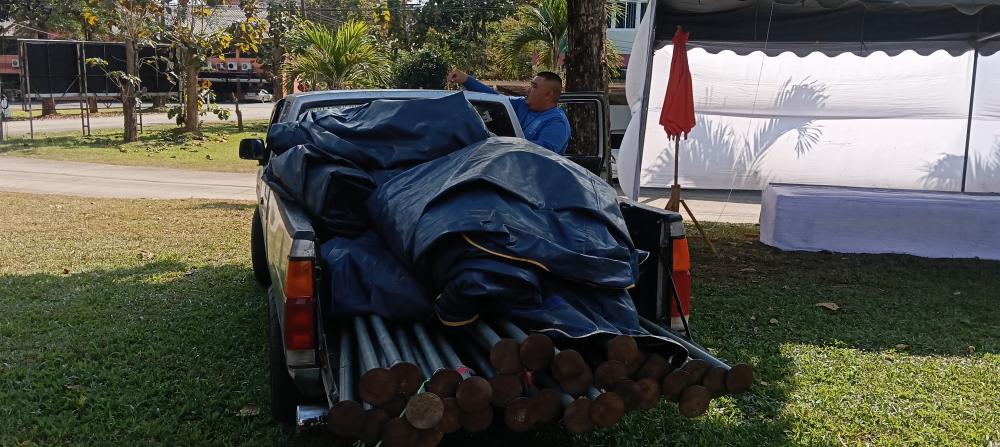 จัดเก็บโต๊ะเต็นท์ อุปกรณ์ต่างๆหลังเสร็จสิ้นงาน บวงสรวงพระวิษณุ คณะเทคโนโลยีอุตสาหกรรม