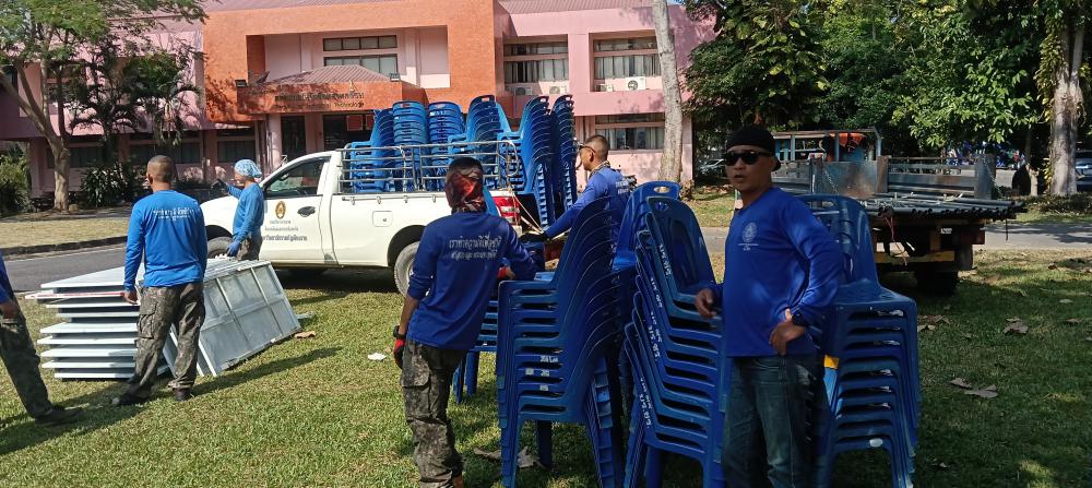 คณะเทคโนโลยีอุตฯ จัดเก็บโต๊ะเต็นท์อุปกรณ์ต่างๆหลังเสร็จสิ้นงานบวงสรวงพระวิษณุคณะเทคโนโลยีอุตสาหกรรม