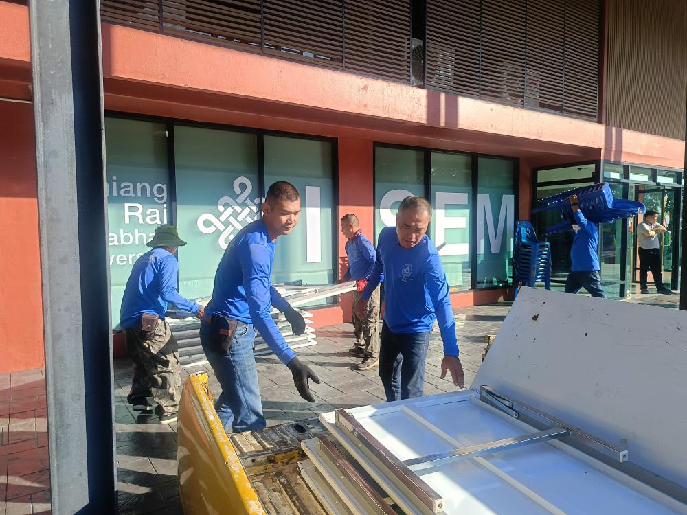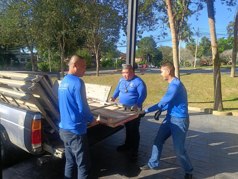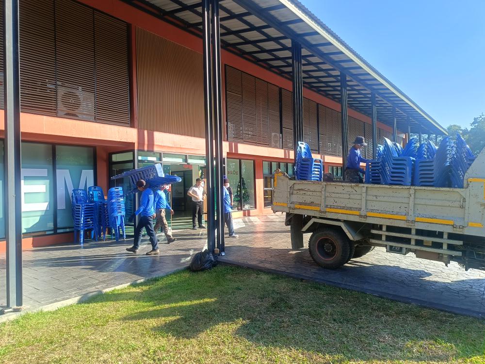 ขนย้ายโต๊ะเก้าอี้ ไปให้ ศูนย์ นักศึกษาต่างชาติฯ