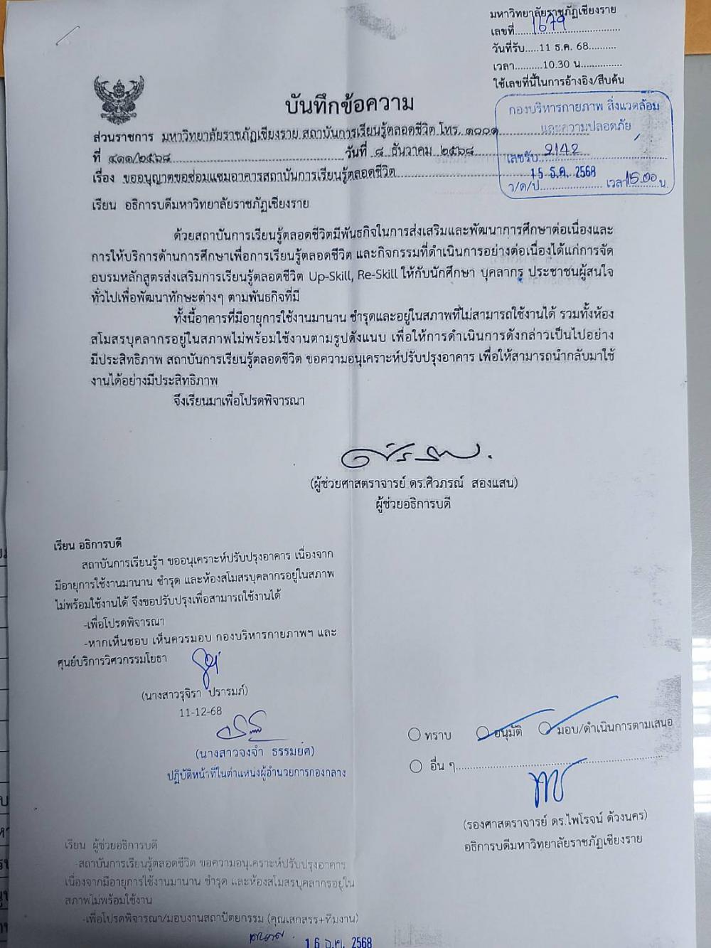 สถาบันการเรียนรู้ฯ ปรับปรุงอาคารสถาบันการเรียนรู้ตลอดชีวิต เนื่องจากชำรุด