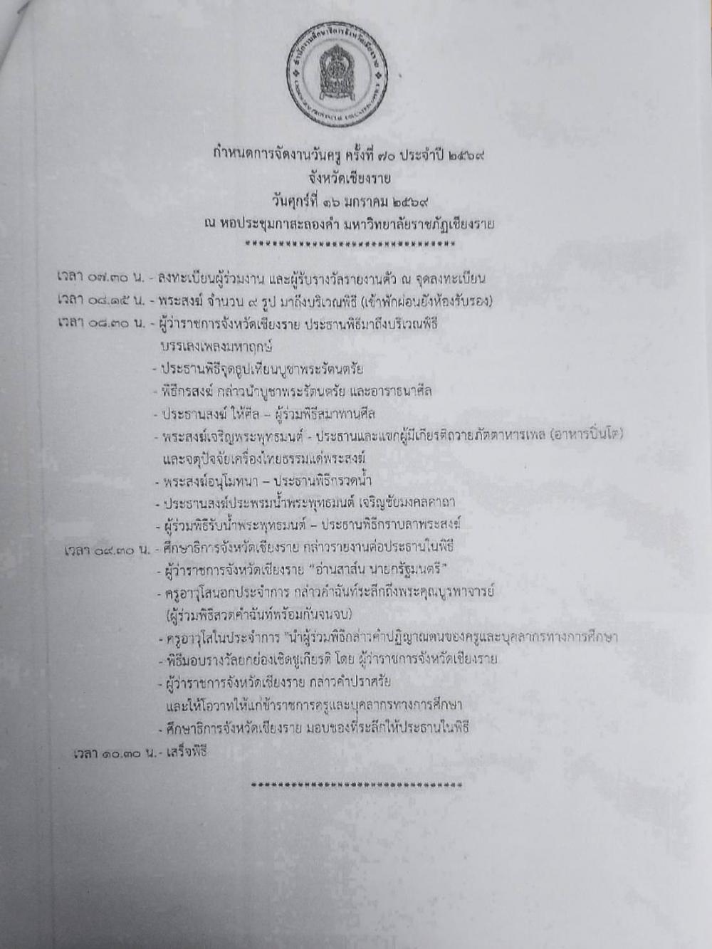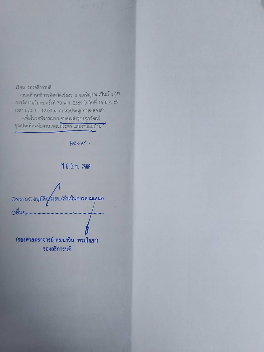 สำนักบริหารทรัพย์สินฯ จัดสถานที่หอประชุมกาสะลองคำ กิจกรรมวันครู ครั้งที่ 70 สนง.ศึกษาธิการจังหวัดเชียงราย วันที่ 16 ม.ค. 2569