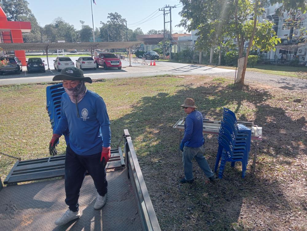 จัดเก็บโต๊ะเก้าอี้หลังเสร็จสิ้นงานเลี้ยงปีใหม่ ศูนย์นักศึกษาต่างชาติ