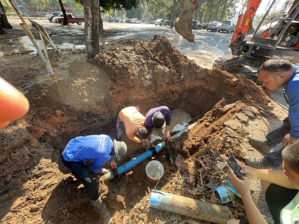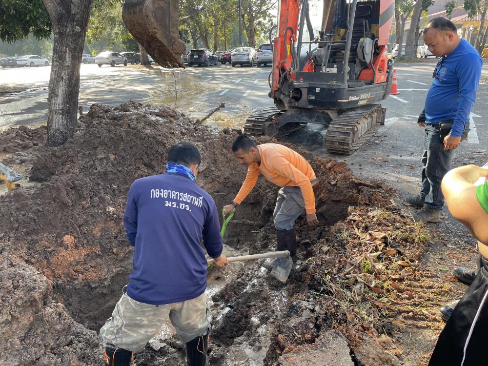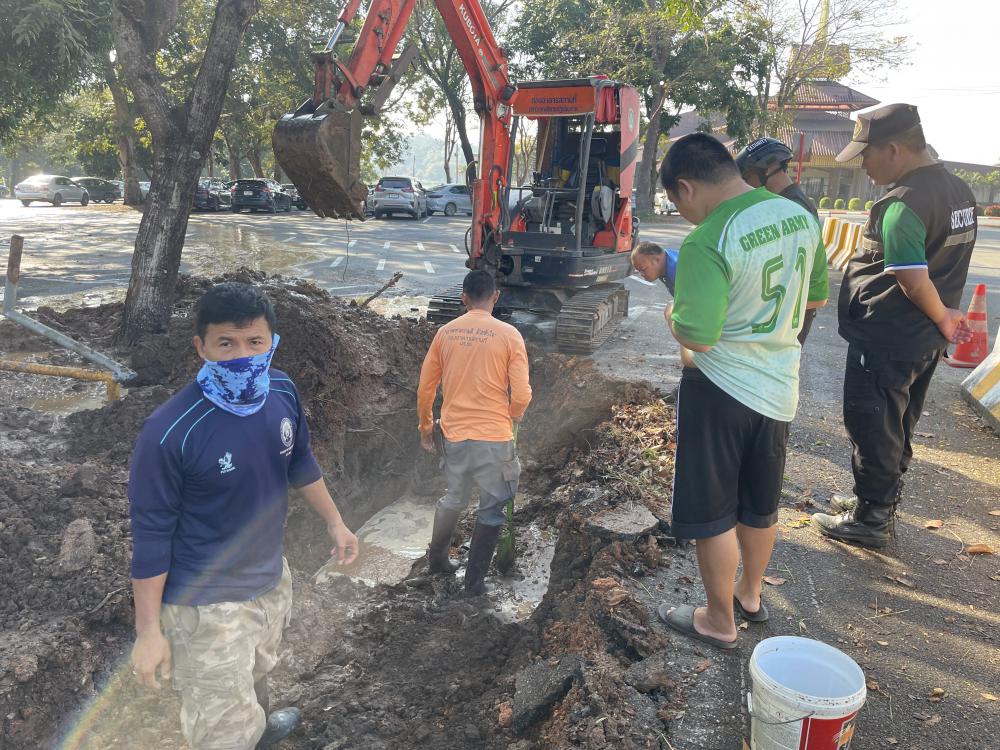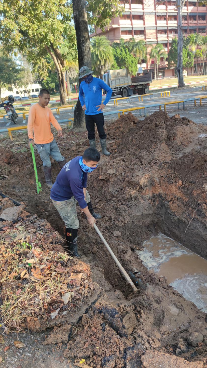 ซ่อมท่อแตกบริเวณลานจอดรถอาคารเรียนรวม 1