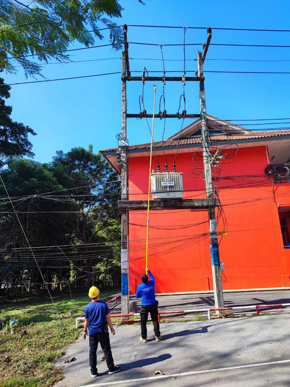 กองบริหารกายภาพฯ ตรวจเช็คซ่อมเปลี่ยนฟิวส์แรงสูงข้างอาคาร 79 มนุษยศาสตร์