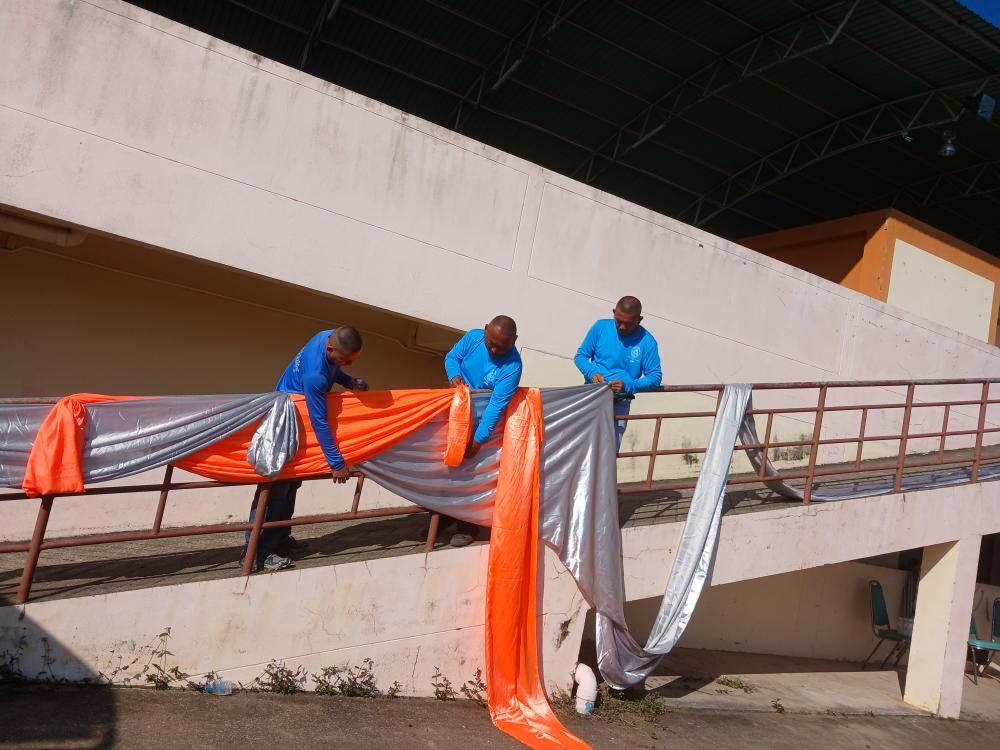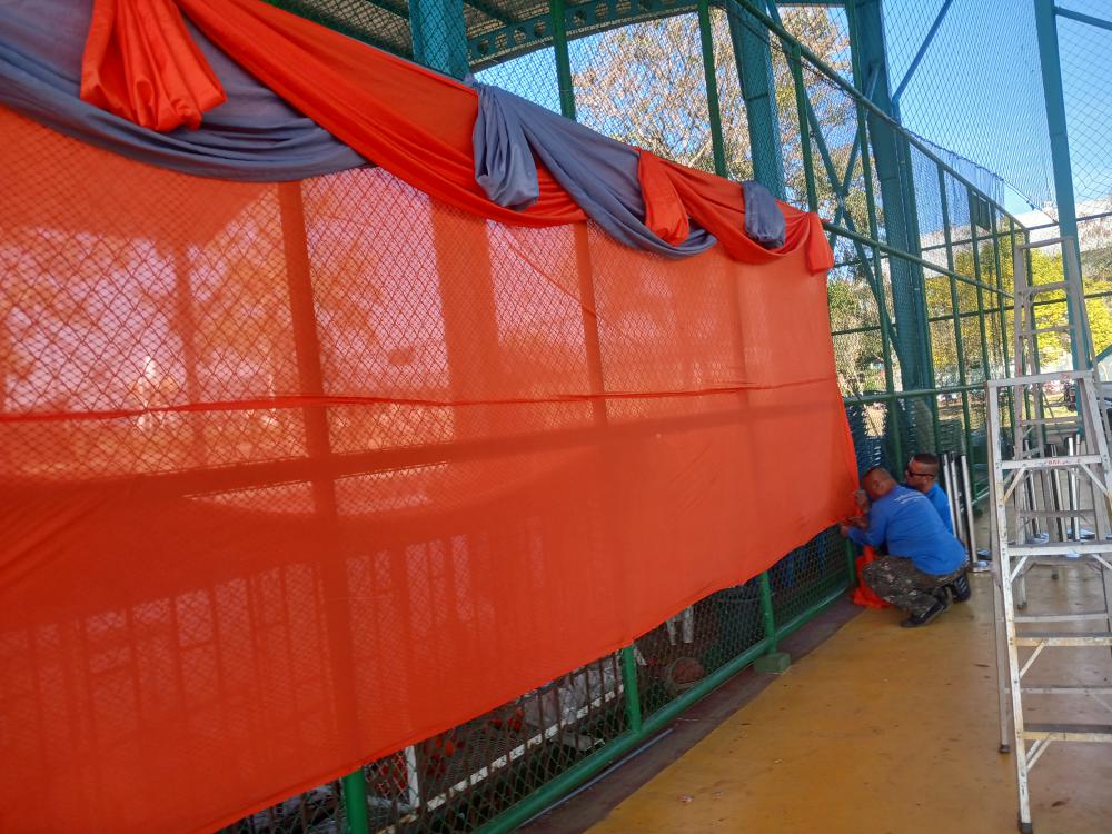 โรงเรียนสาธิตฯ มัดผ้าสนามกีฬาและโดมฟุตซอลให้โรงเรียนสาธิต