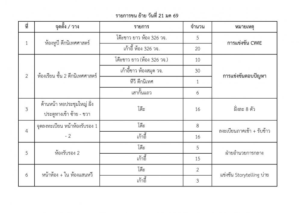ประเภทงาน: จัดสถานที่ ผู้ประสาน: รับแจ้ง: 6 มกราคม 2569