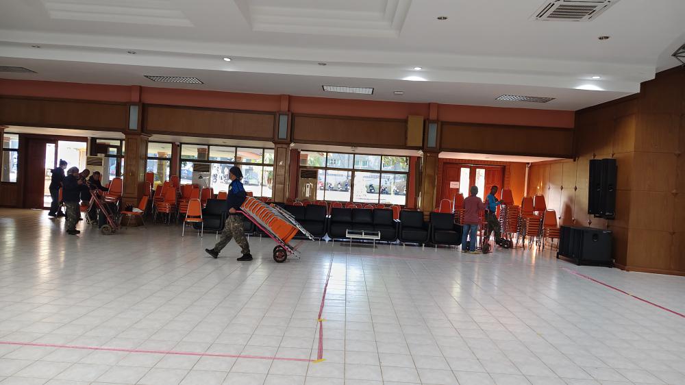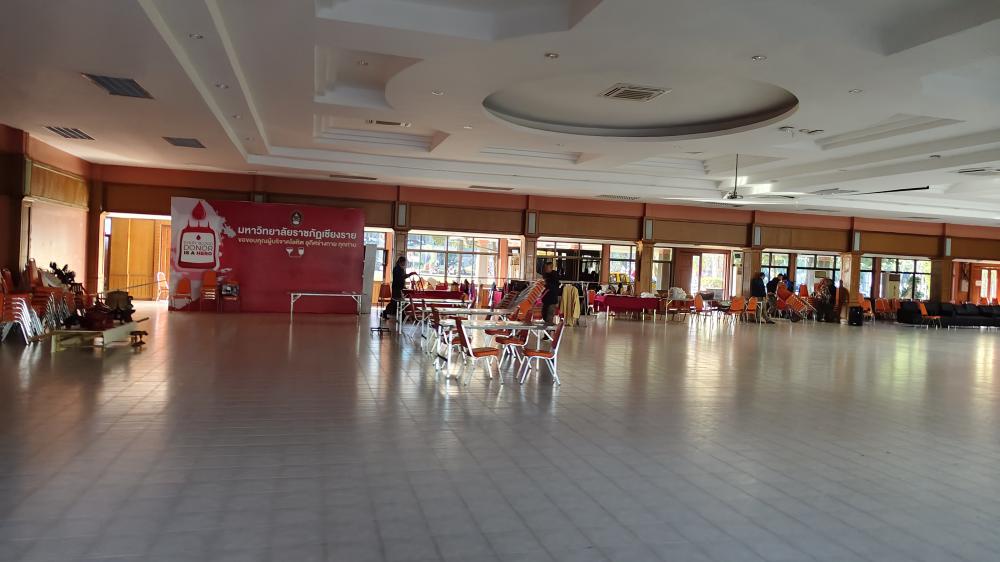 กองบริหารกายภาพฯ เก็บเก้าอี้หอประชุม กาสองคำ เตรียมงานเลี้ยง รับรอง งานผ้าป่ามหาวิทยาลัย