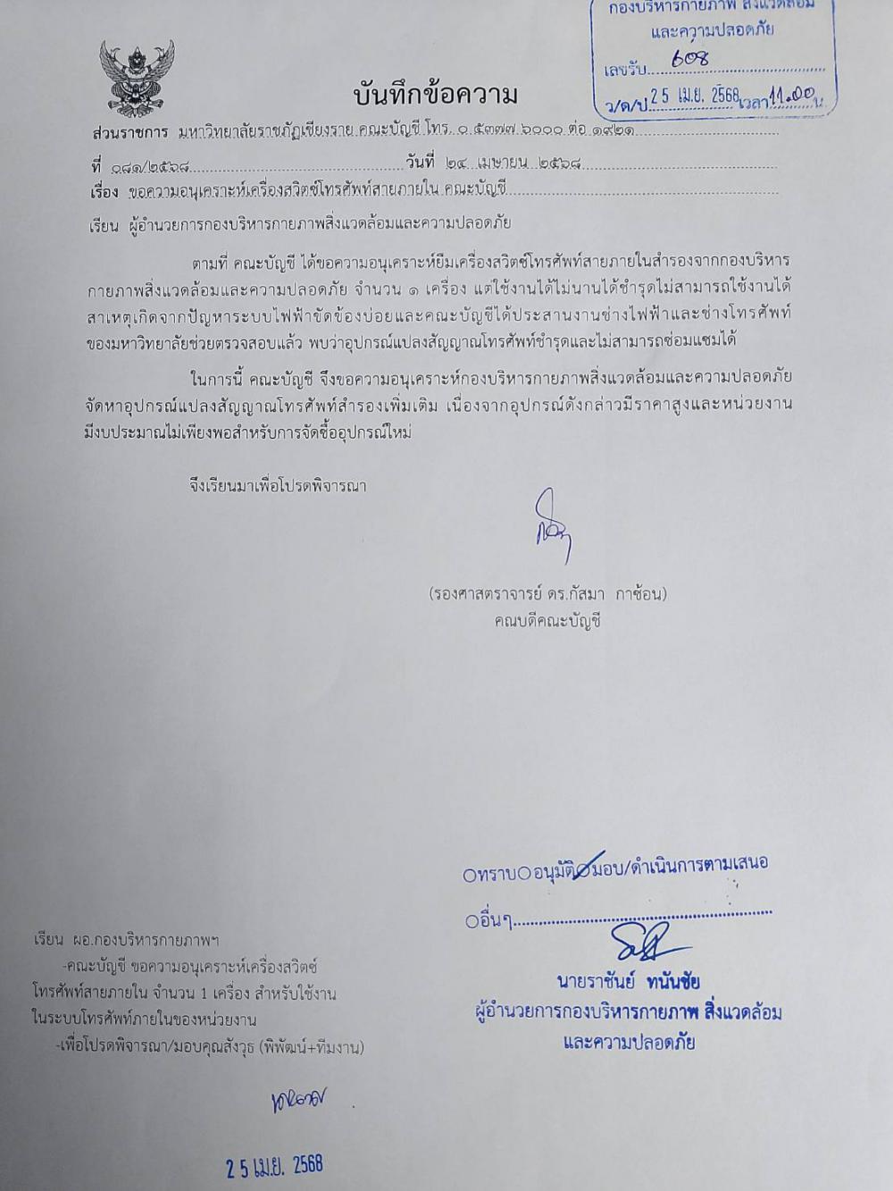 คณะบัญชี โทรศัพท์ภายในห้องสำนักงานคณบดี คณะบัญชี ใช้งานไม่ได้