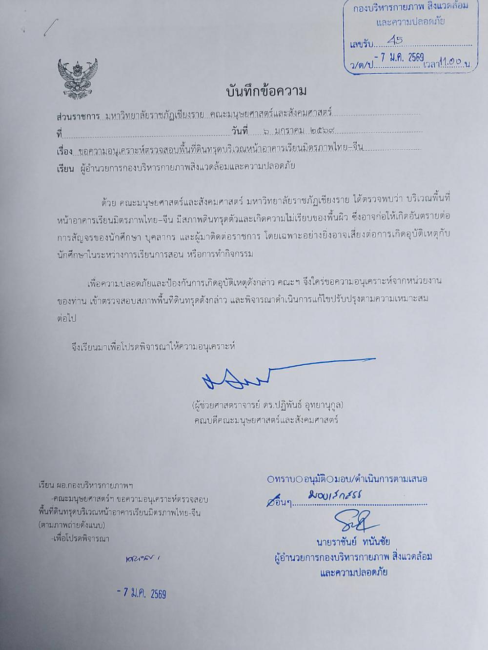 คณะมนุษยศาสตร์ฯ ตรวจสอบพื้นดินทรุดบริเวณหน้าอาคารเรียนมิตรภาพไทย-จีน