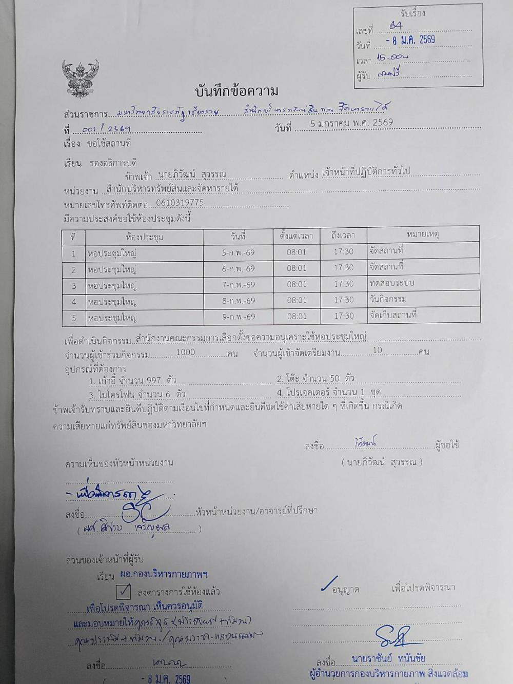 สำนักบริหารทรัพย์สินฯ จัดสถานที่หอประชุมใหญ่ สำนักงานคณะกรรมการการเลือกตั้งจังหวัดเชียงราย วันที่ 5-9 ก.พ. 2569