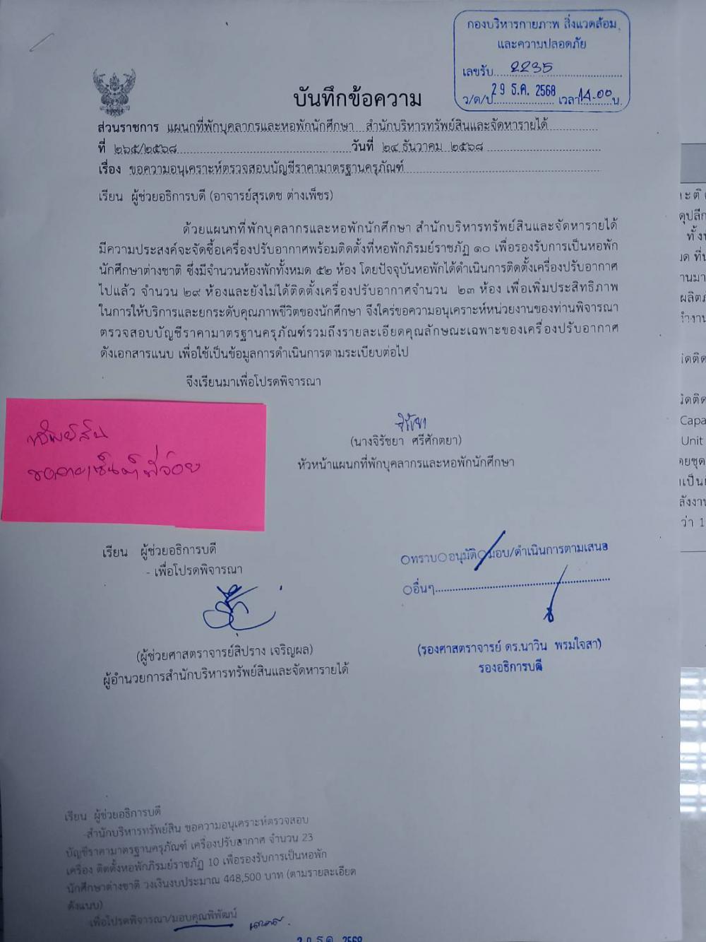 สำนักบริหารทรัพย์สินฯ ตรวจสอบบัญชีราคามาตรฐานครุภัณฑ์ เครื่องปรับอากาศ ติดตั้งหอพักภิรมย์ราชภัฏ 10