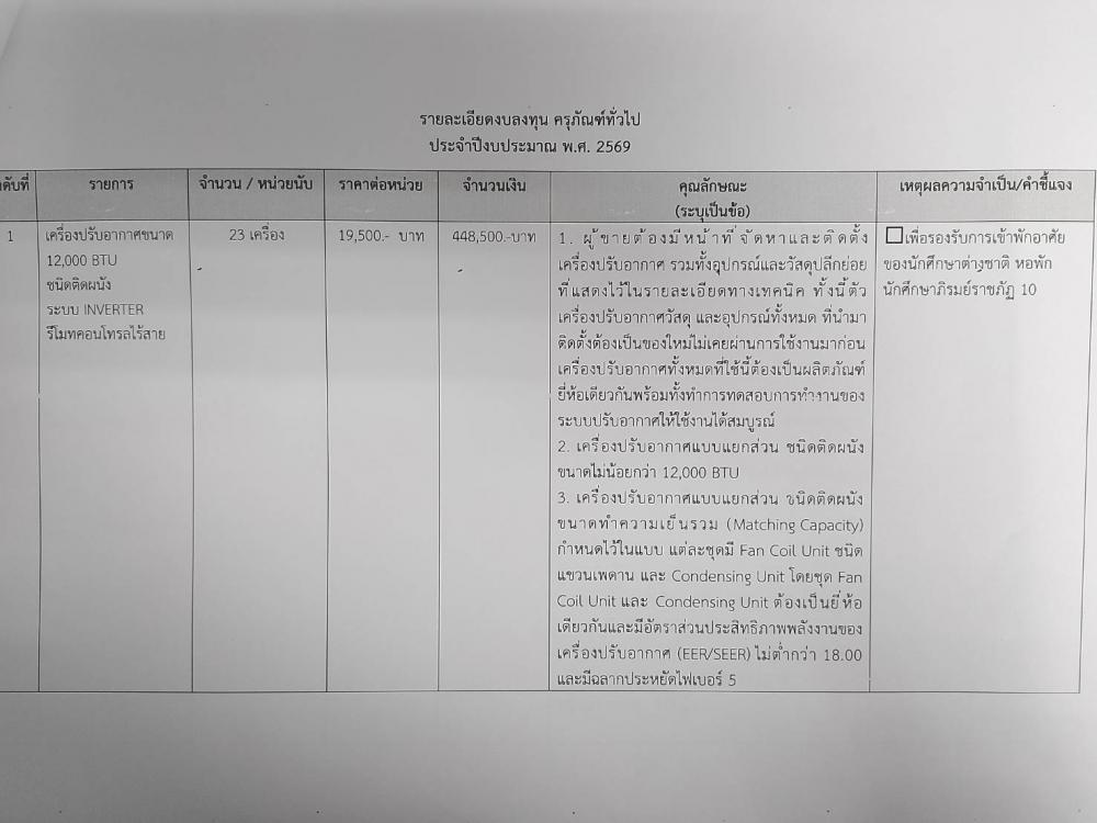 ตรวจสอบบัญชีราคามาตรฐานครุภัณฑ์ เครื่องปรับอากาศ ติดตั้งหอพักภิรมย์ราชภัฏ 10