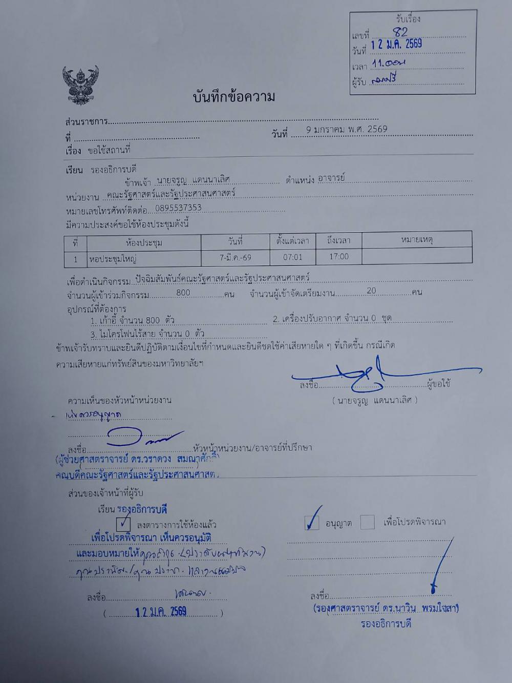 คณะรัฐศาสตร์ฯ จัดสถานที่หอประชุมใหญ่ ปัจฉิมสัมพันธ์คณะรัฐศาสตร์และรัฐประศาสนศาสตร์ วันที่ 6 มี.ค. 2569