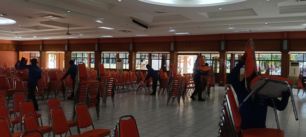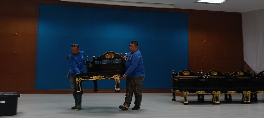 สำนักบริหารทรัพย์สินฯ เก็บของต่างๆส่งคืนหลังเสร็จสิ้นงานวันครูหอประชุมกาสะลองคำ