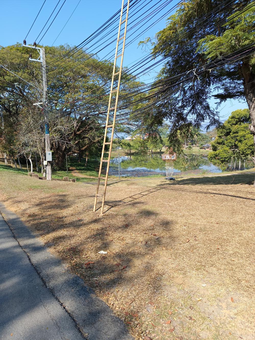 ปรับปรุงเก็บสายโทรศพท์สื่อสารต่างๆที่หย่อนบริเวณลานกลางแจ้งภีงหน้าคหกรรม