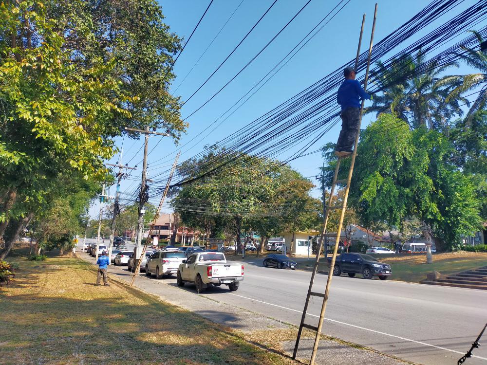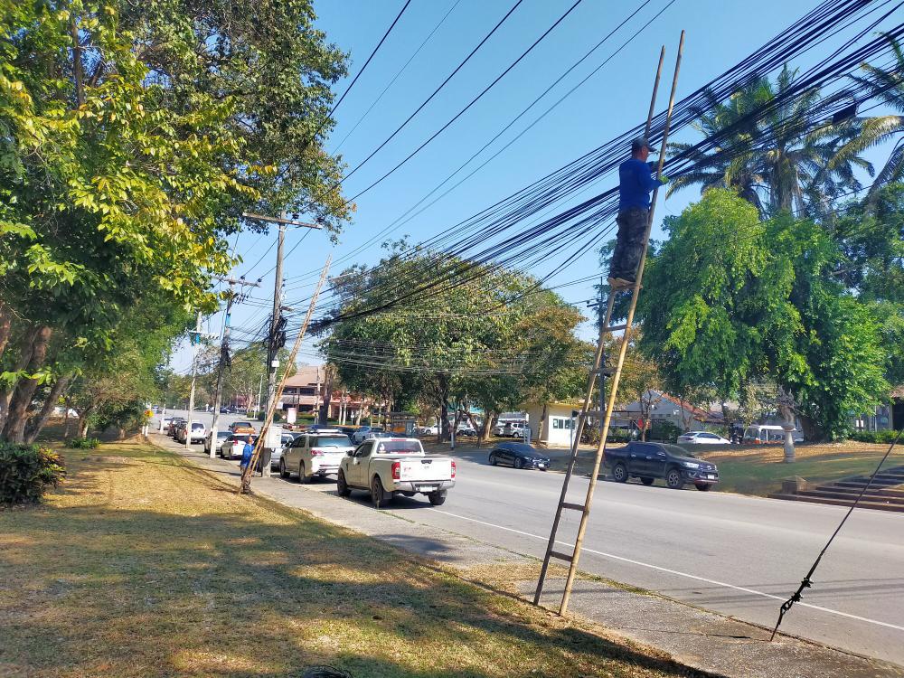 กองบริหารกายภาพฯ สายส่อสารหย่อนไม่สวยงาม