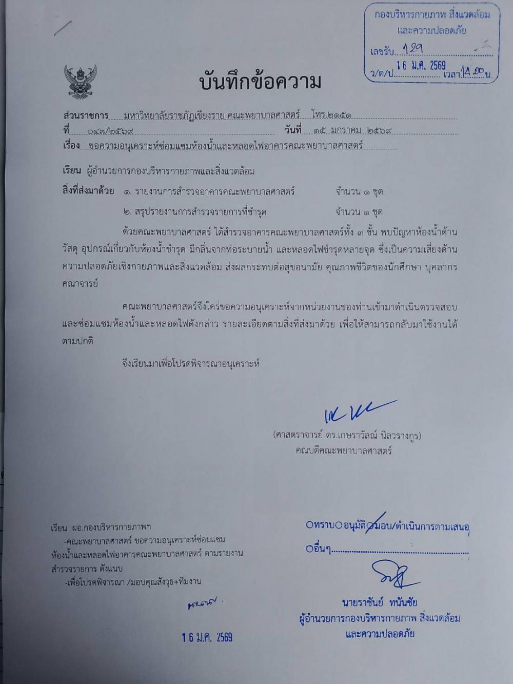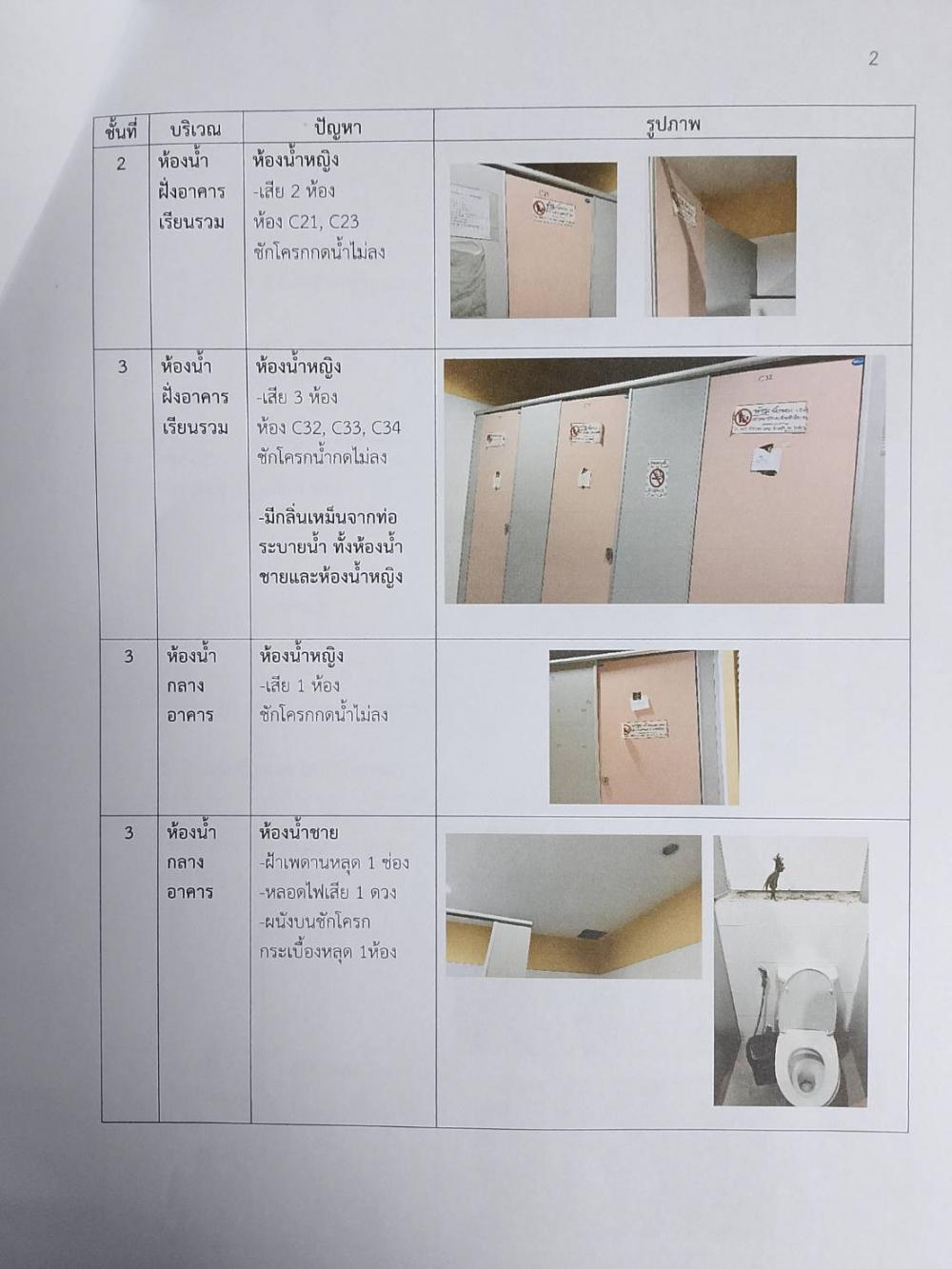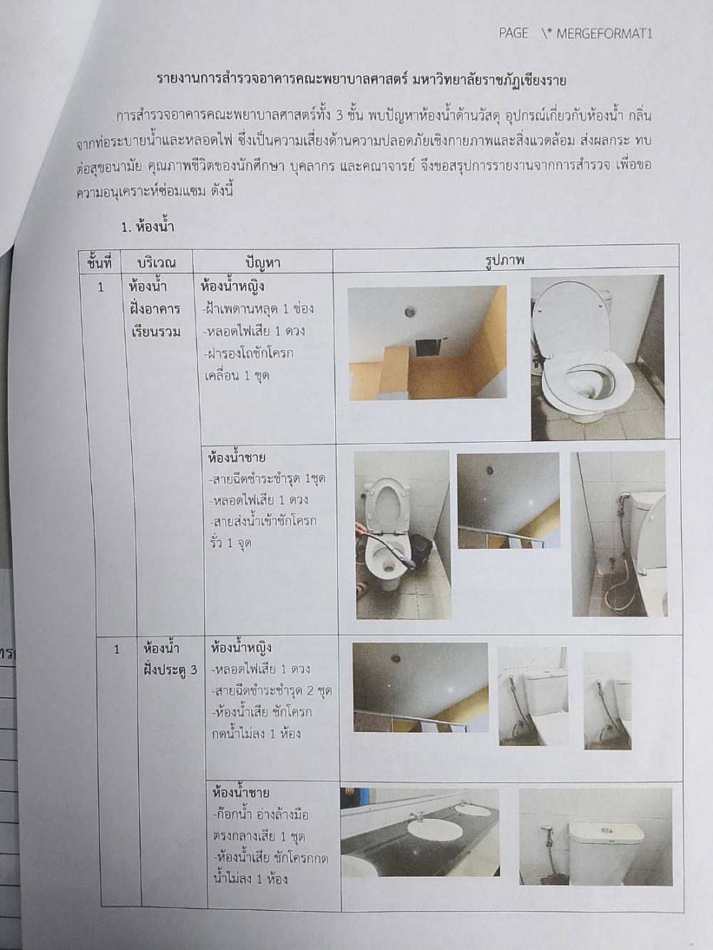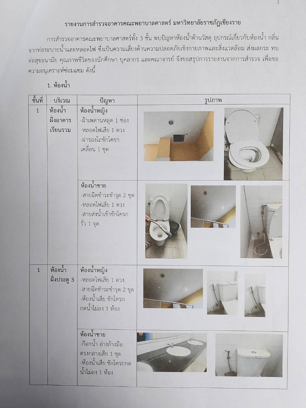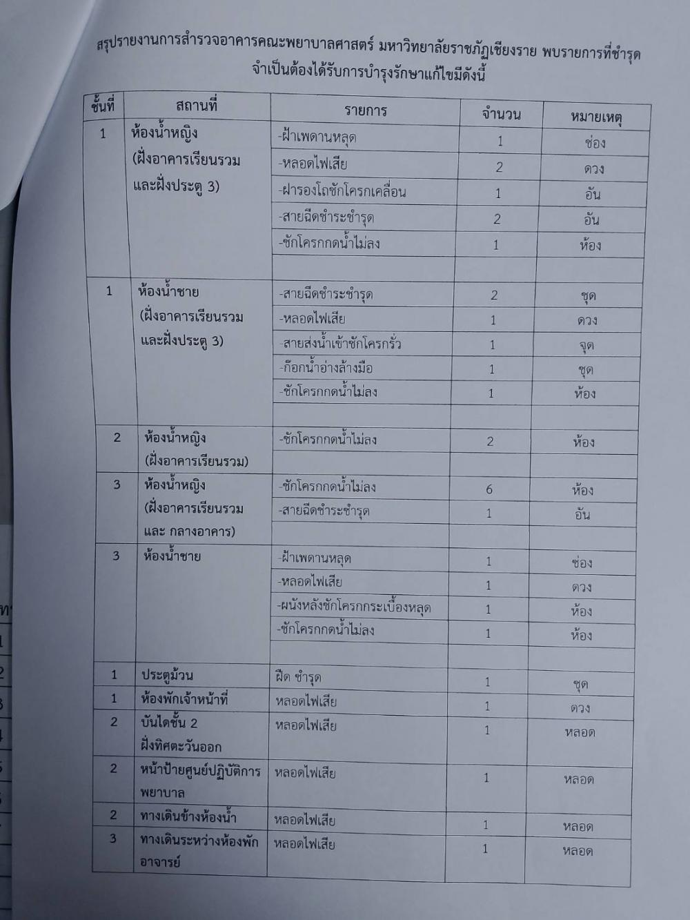 ตรวจสอบและซ่อมแซมห้องน้ำและหลอดไฟอาคารคณะพยาบาลศาสตร์