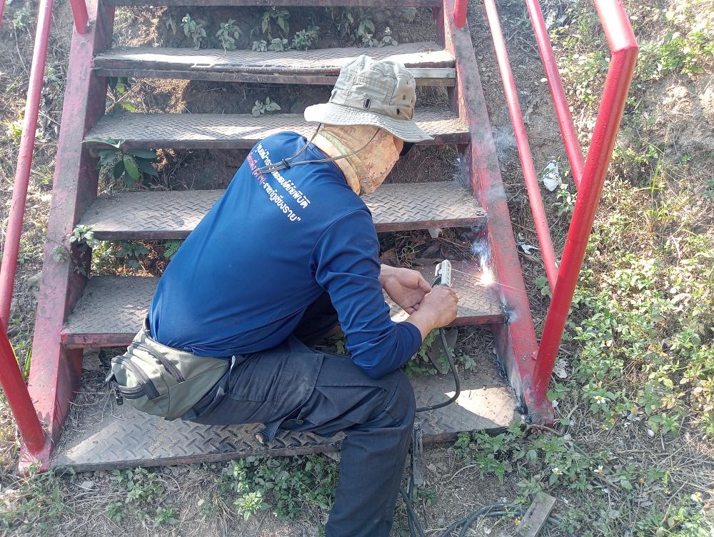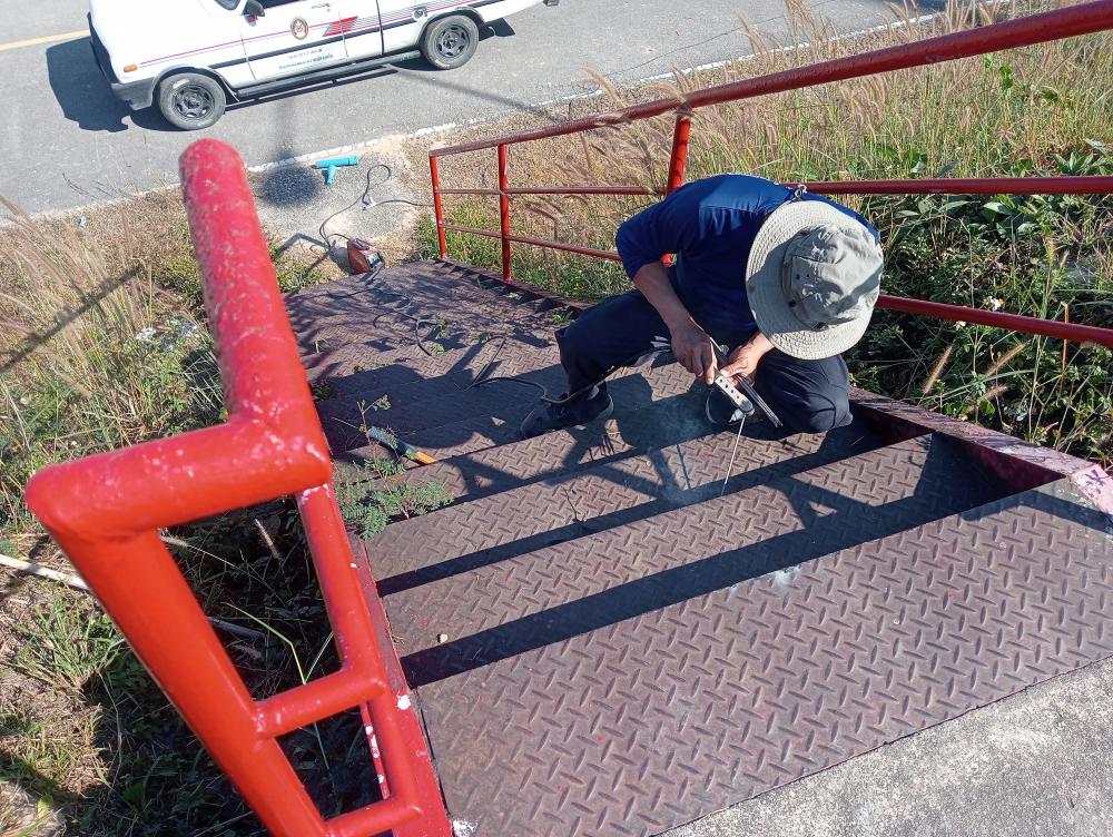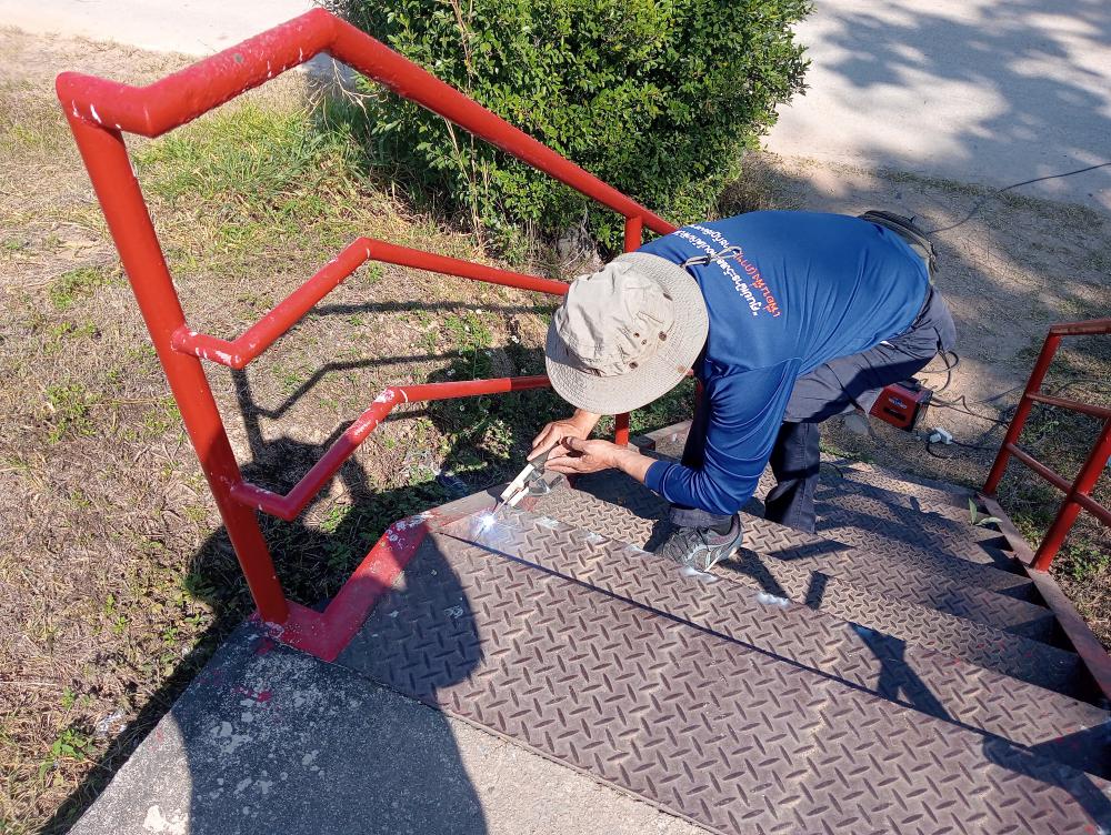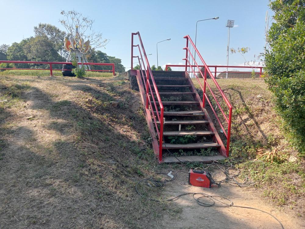 ซ่อมแซมราวบันไดทางลงหน้าโรงยิม