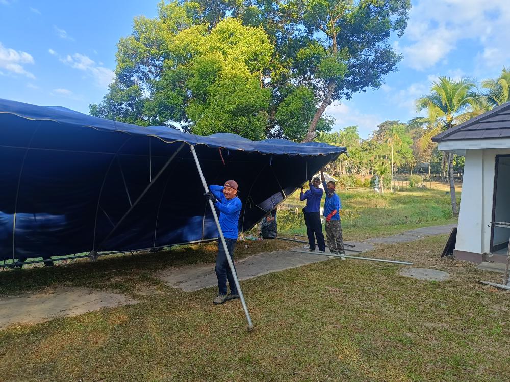 จัดเก็บอุปกรณ์ต่างๆ หลังเสร็จสิ้นงานวันพร เวทีกลางแจ้ง