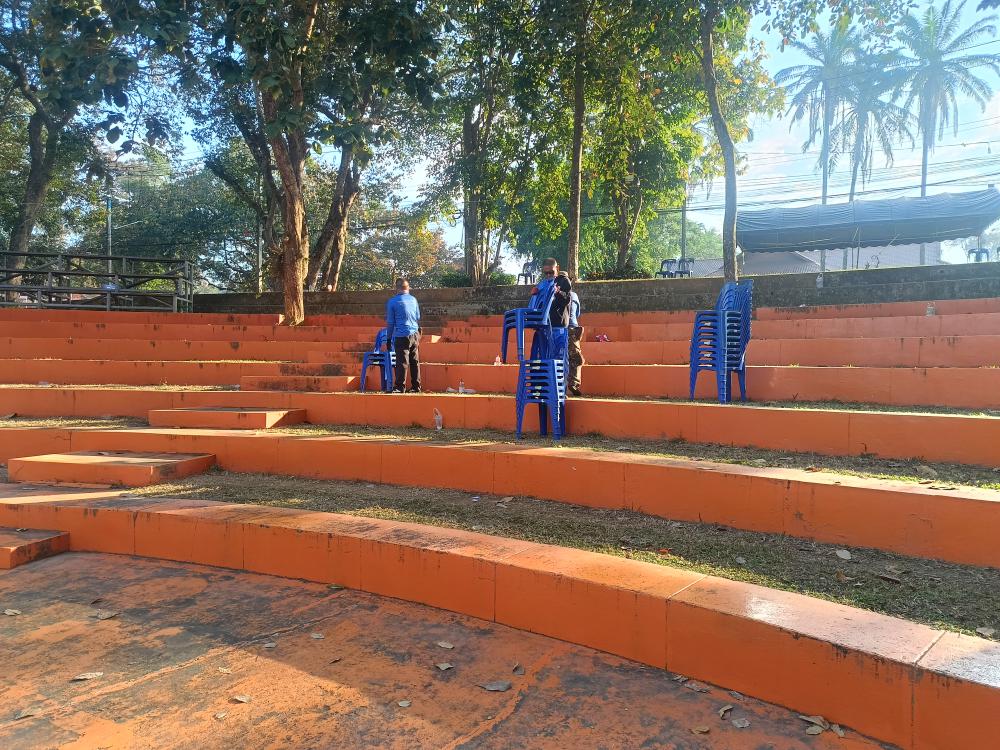 กองพัฒนานักศึกษา จัดเก็บอุปกรณ์ต่างๆ หลังเสร็จสิ้นงานวัน พร บริเวณ เวทีกลางแจ้ง
