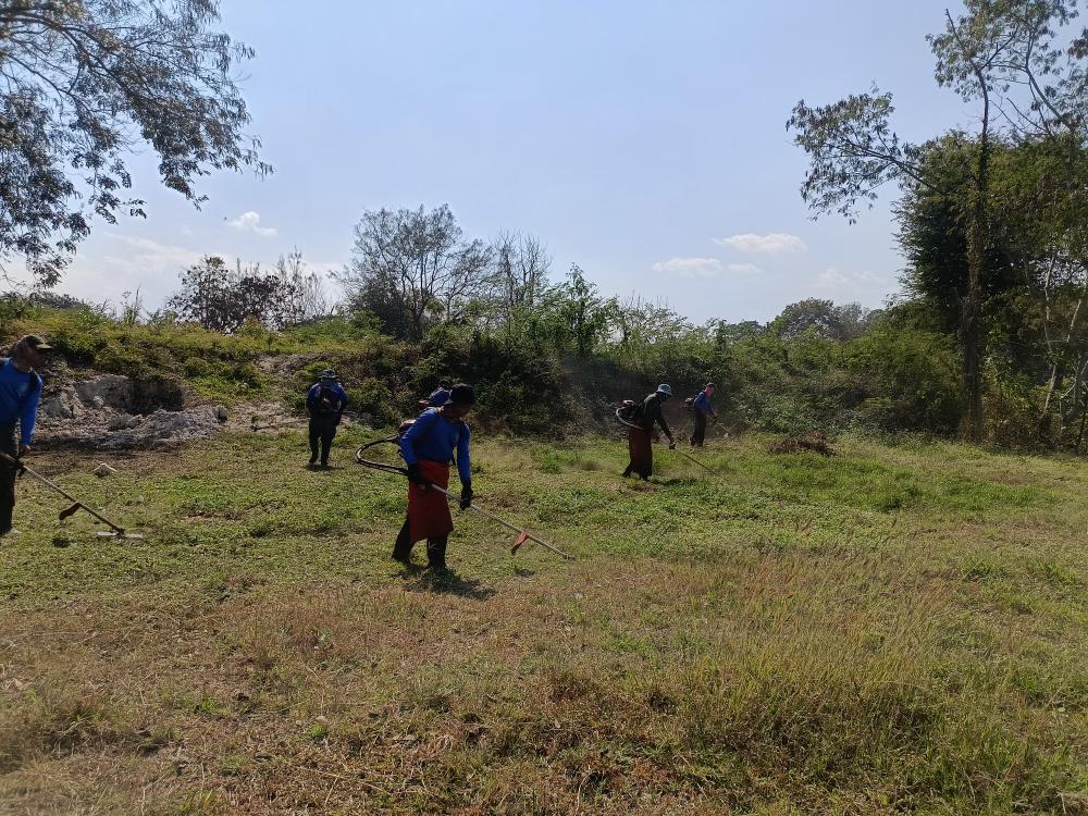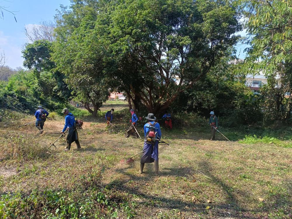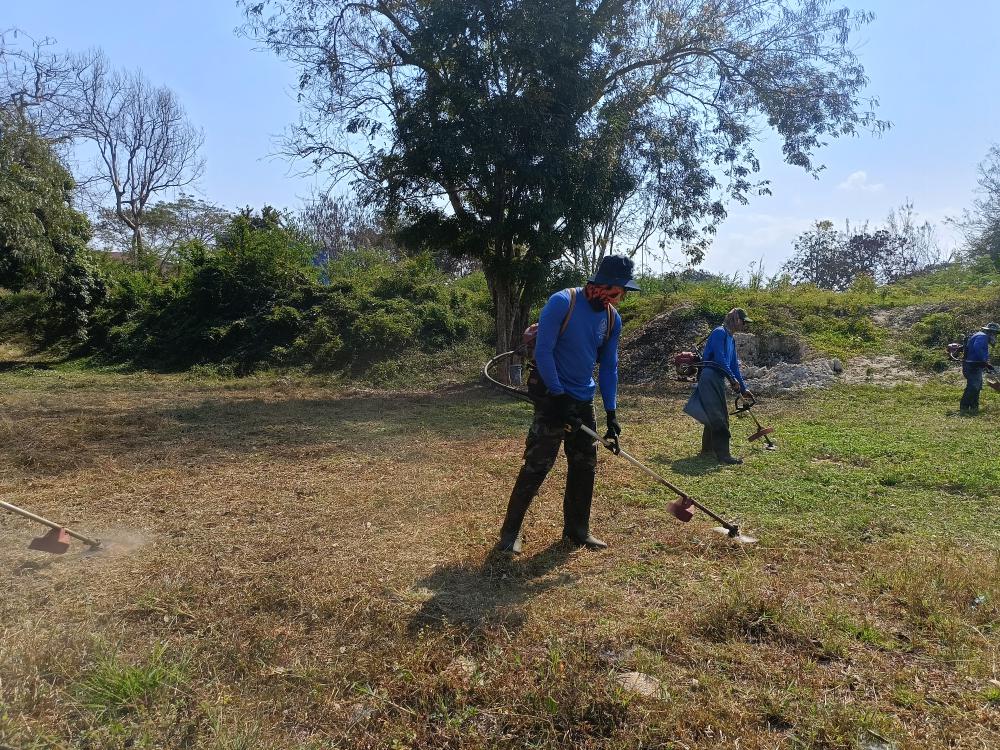 ตัดหญ้ารอบแทงค์น้ำข้างหอประชุมใหญ่
